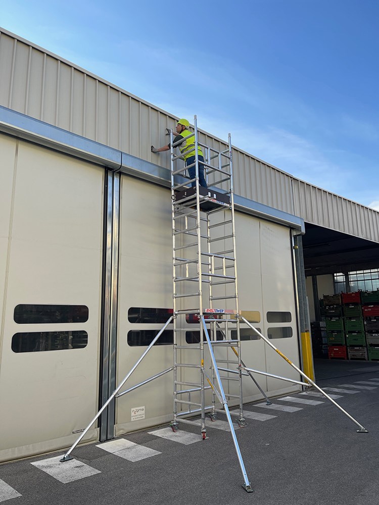 Ultrakompaktes professionelles Gerüst, von nur 1 Bediener schnell montierbar. Europäische Norm UNIEN1004-1-2