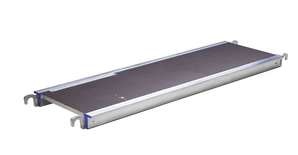 - Gehfläche mit Aluminiumverstärkung und mehrschichtiger Marineholzdecke mit Zehenstopper, Falltür und winddichtem Haken. Das Holz ist lackiert und rutschfest.