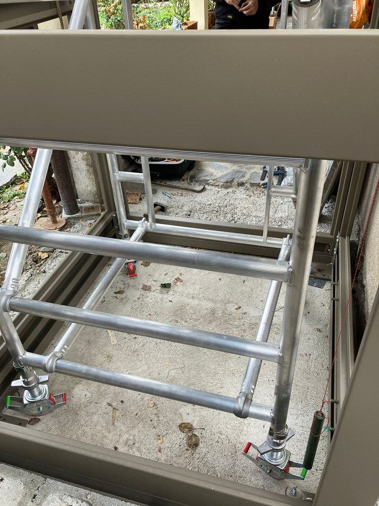 - Die Gerüste oder das „Rohr und Gelenk“, die in einem Aufzugsschacht montiert/verwendet werden sollen, erfordern ein P.I.M.U.S. mit allen damit verbundenen bürokratischen Komplikationen (Ingenieur usw.).