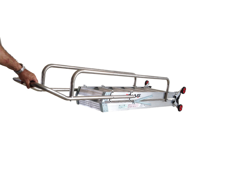Dank der Schieberollen (2 oder 4) lassen sich selbst schwerste Leitern schnell bewegen, was Zeit und Mühe spart.