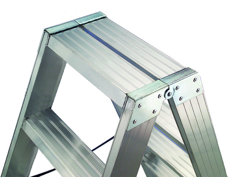 Mit der optionalen Aluminiumbrüstung kann man die Leiter bis zur vorletzten Stufe mit gutem Halt und einem Gefühl der Sicherheit und des Komforts benutzen, was die Produktivität erhöht.