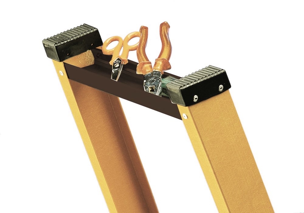 Die Fiberglasholme sorgen für elektrische Isolierung und die rutschfesten, gerändelten Aluminiumstufen machen die Leiter leicht und wendig.