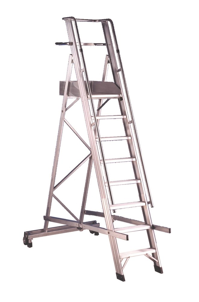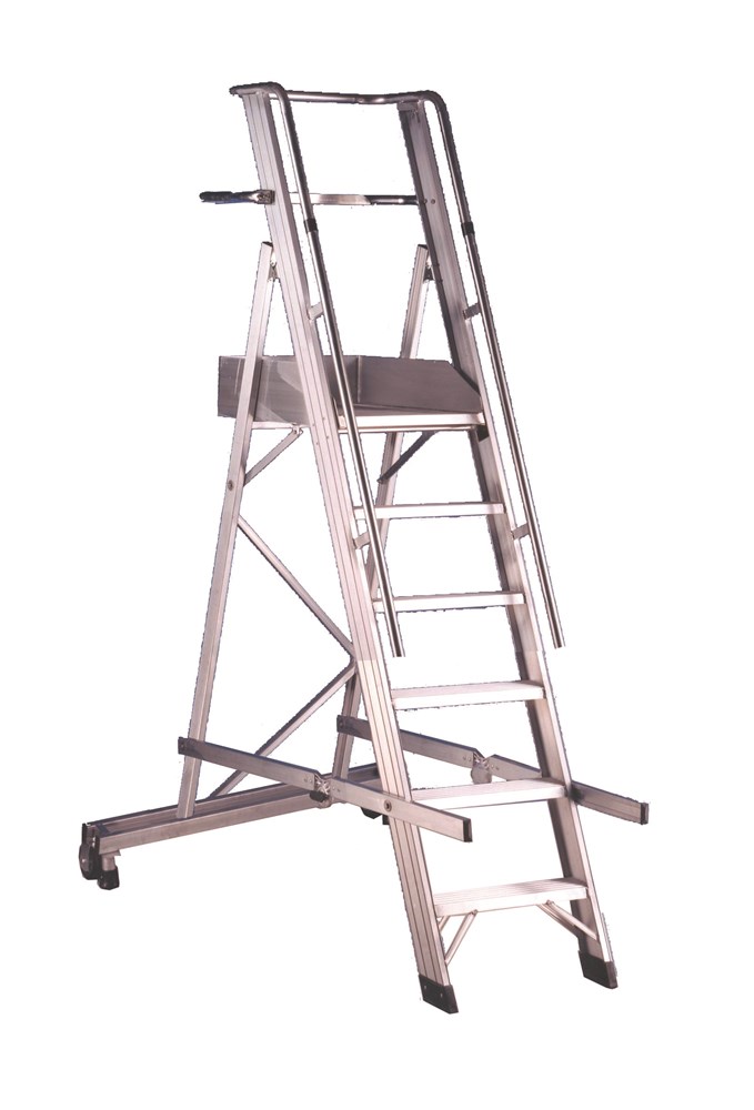 Die breite Aufstiegsrampe und die breite Arbeitsplattform aus Aluminium mit den Maßen cm 54x54 ermöglichen die Verwendung als Podestleiter.