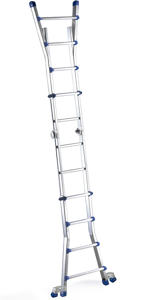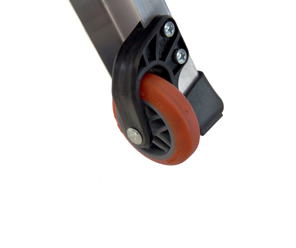 Modelle mit einer Länge von mehr als 3 m können nur dann gemäß der europäischen Norm UNIEN131 verwendet werden, wenn die mit Ausleger-Basisverbreiterung verwendet wird, die den Raum unter den Sprossen der Leiter frei lässt, so dass diese auch bei kleinen Hindernissen (Steine, Unebenheiten im Boden usw.) verwendet werden kann.