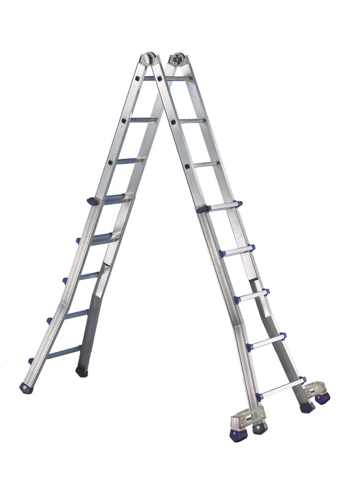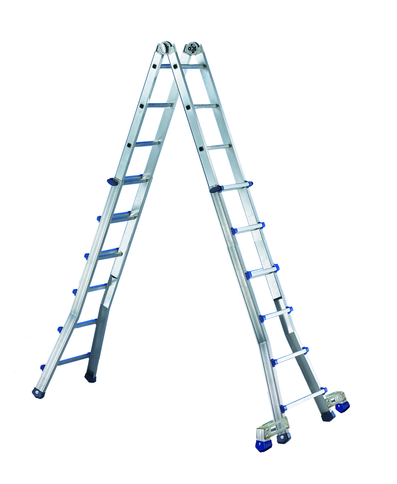 Mit Teleskopauszug kann sie als Teleskopleiter oder als Doppelleiter oder Leiter für Treppen verwendet werden.