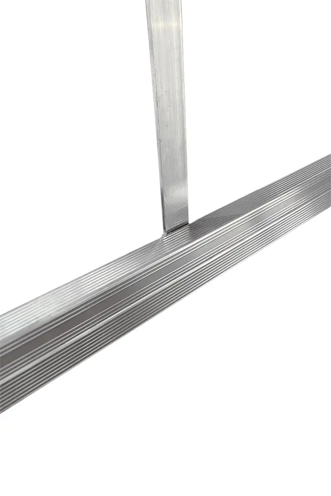 In extrudiertem, geripptem Aluminium mit konvergierenden Aufrechten und einer Säule , die auch die Position der Brücke ermöglicht.