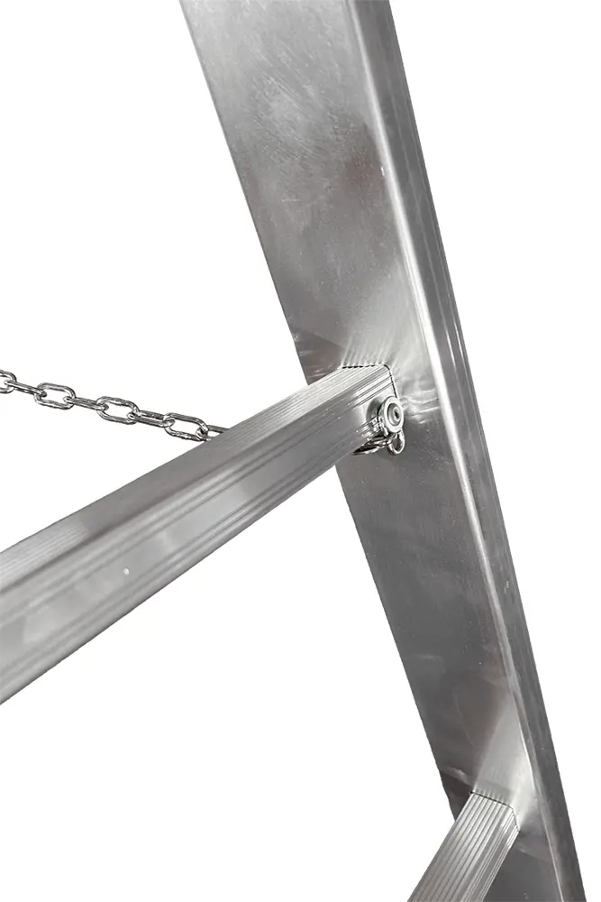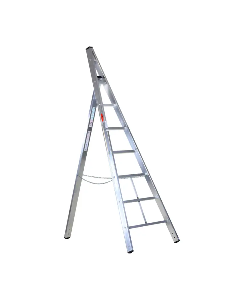 Doppelte konische Leiter mit Standardsäule für ebenen Boden. Er kann auch als Stand genutzt werden.