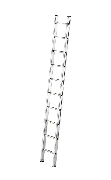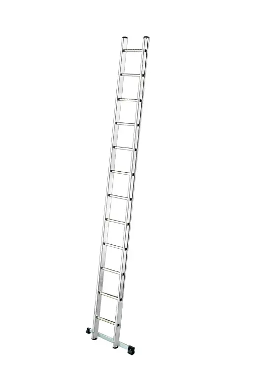 Einfache Leiter mit Sprossen zu einer Kletterstrecke. Aus stranggepresstem Aluminium, besäumt, mit parallelen Pfosten mit einer Außenbreite von 36 cm.