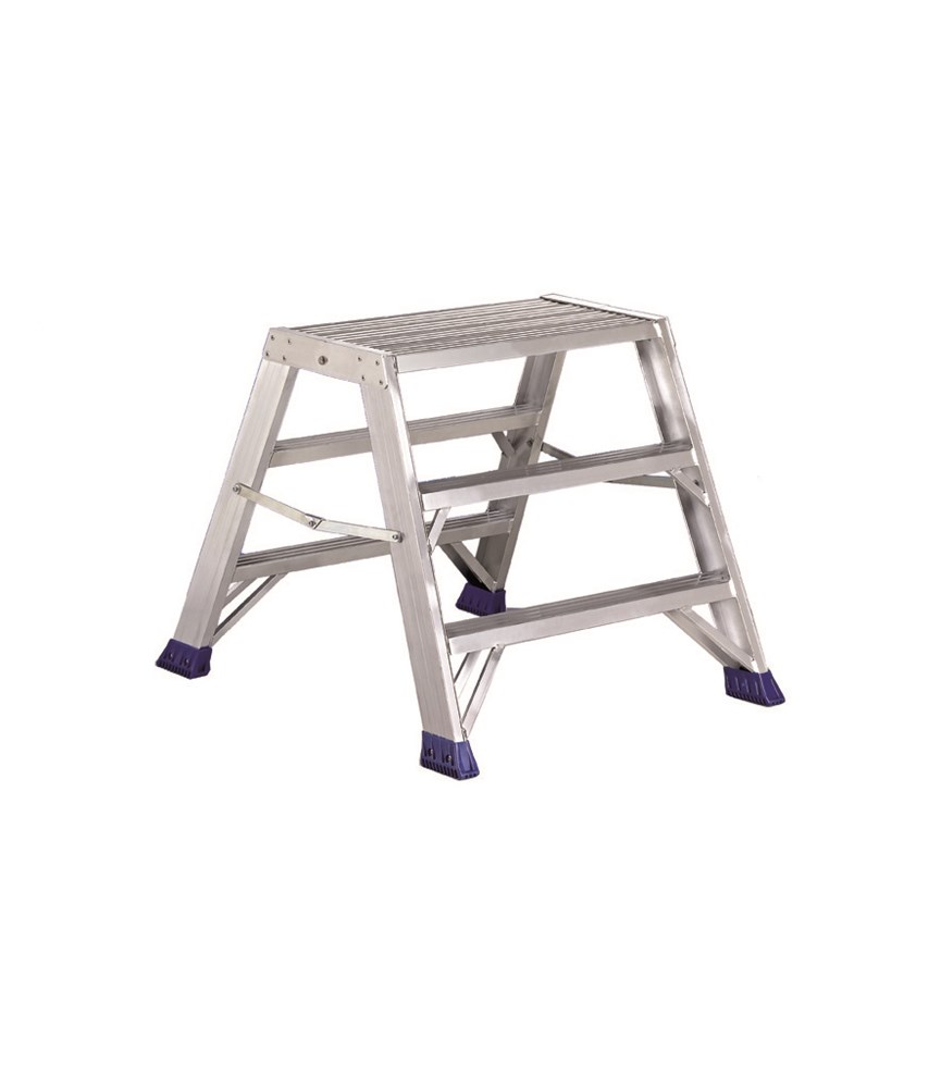 Doppeltritt mit 2 Aufstiegsteilen, mit vergrößerter Plattform 35x70 cm für bequemes und sicheres Stehen in maximaler Höhe und seitliches Begehen des Einsatzbereichs.