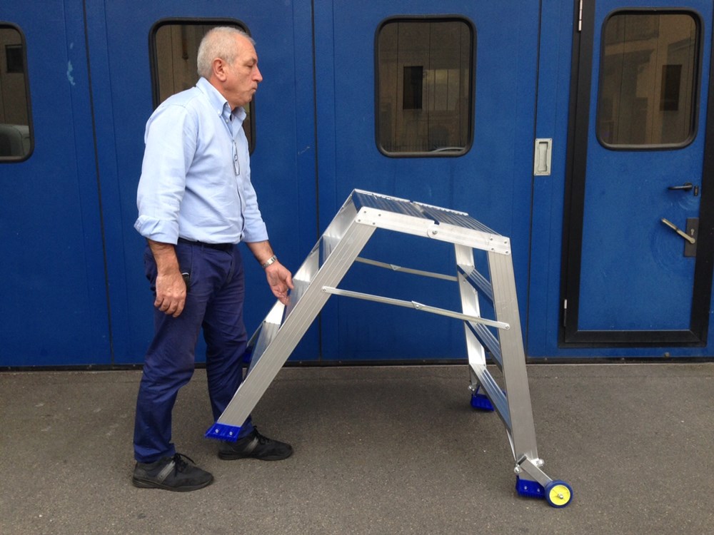 Mit den Rollen kann der Tritt schnell bewegt werden, um Zeit und Mühe zu sparen.