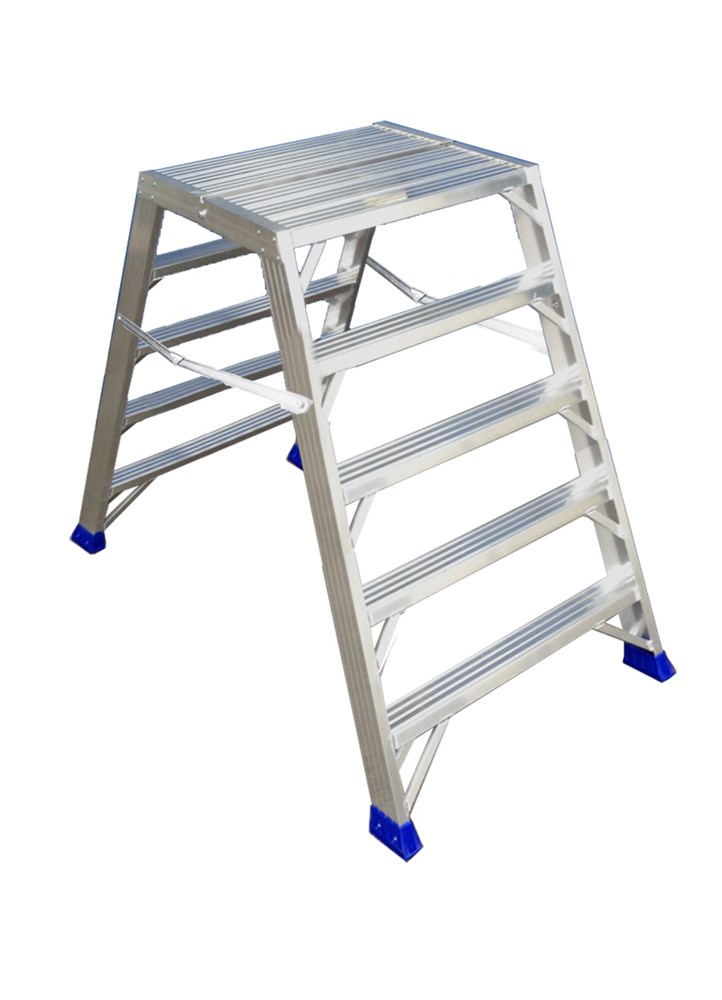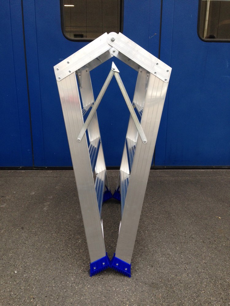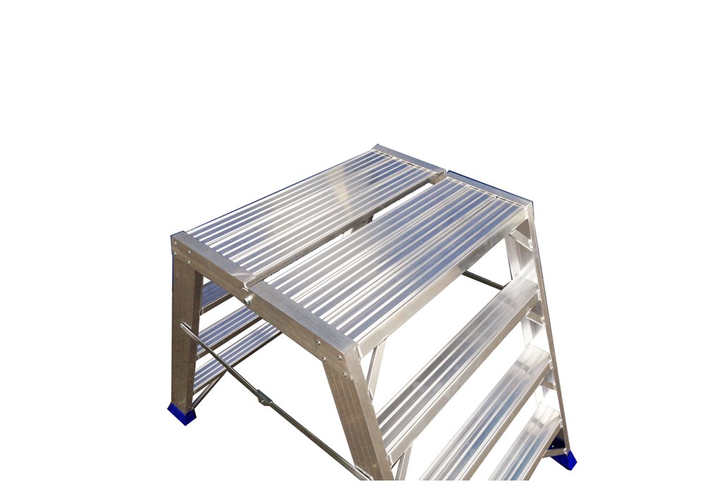 Doppeltritt mit 2 Aufstiegsteilen, mit vergrößerter Plattform. für bequemes und sicheres Stehen in maximaler Höhe.