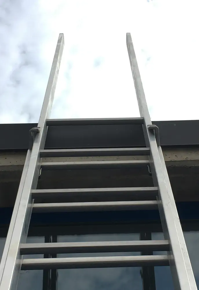 Die Sprossen der Zugangsleitern zu Dächern und Dächern sind für den normalen Gebrauch rutschfest geriffelt.