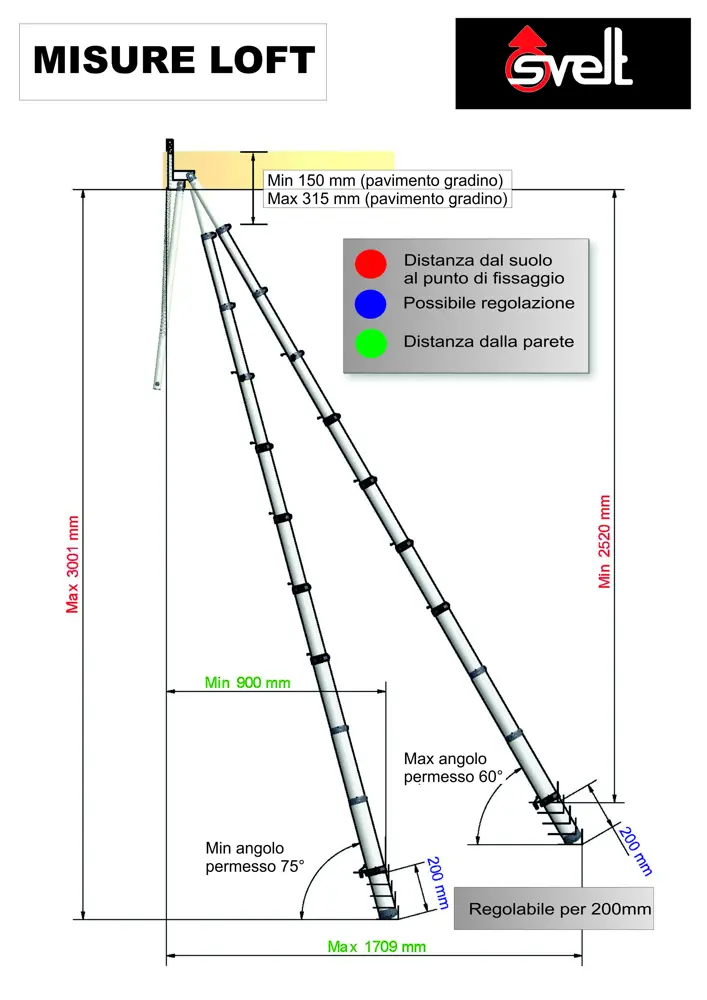 Die einziehbare Loft-Leiter besteht aus eloxiertem Aluminium mit 10 Stufen und ist für Höhen von 2,55 m bis zu einer maximalen Deckenhöhe von 2,95 m und für den Innenbereich verstellbar.