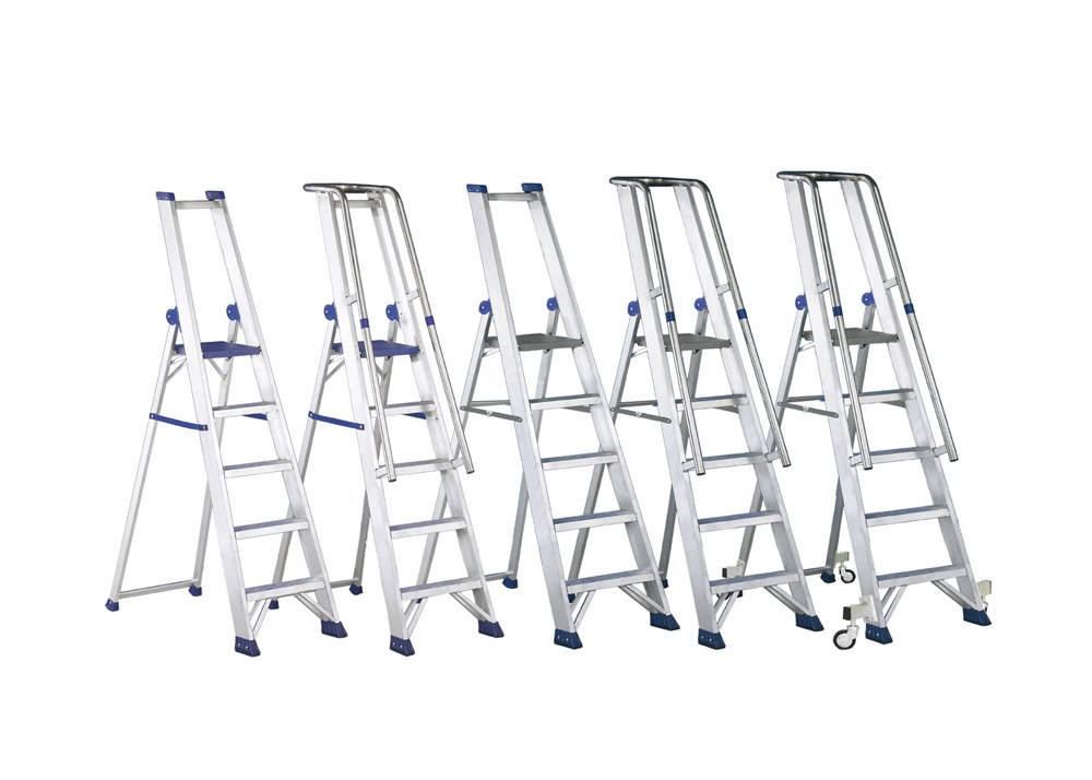 Step ladders with platform and guardrail are the best-selling, best-known and most common model in any hardware store, department store, industrial supply or specialty store. To choose the most suitable ladder for each job, it is not sufficient for the ladder to pass the tests and trials of the European standard EN131 specific for ladders. Other factors must be taken into consideration depending on the end use of the ladder. Svelt, as a specialized manufacturer of ladders, has a wide range and offers suitable solutions for every sector.