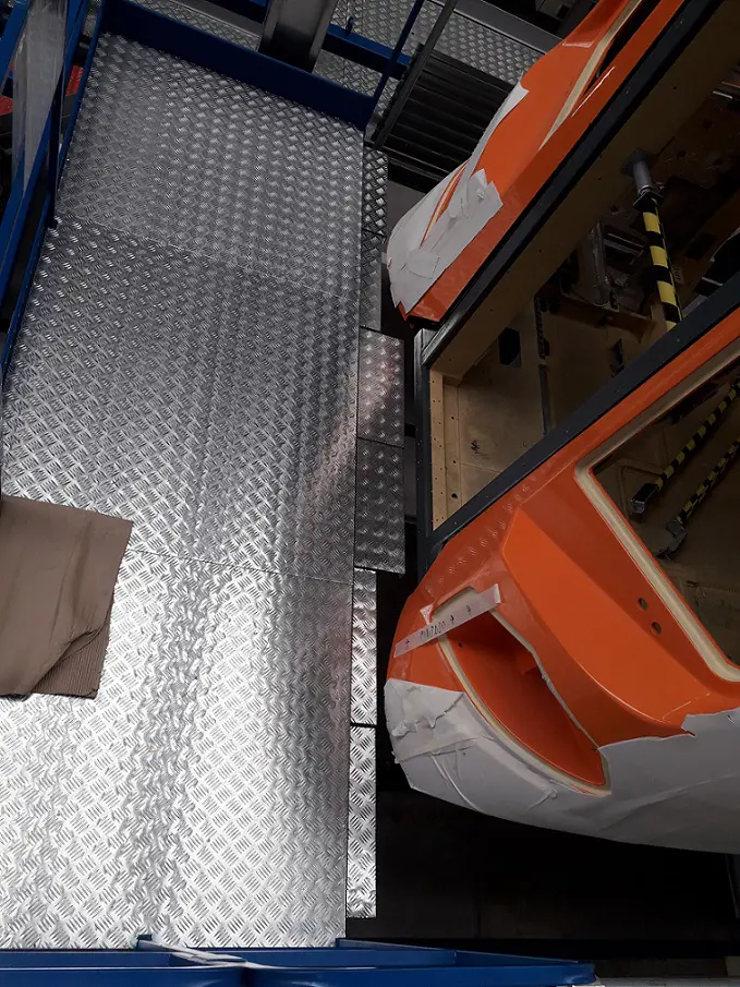 Made of ultra-strong aluminum, it is ideal for working on the sides, front and roof of trains and railway cars for maintenance or production.