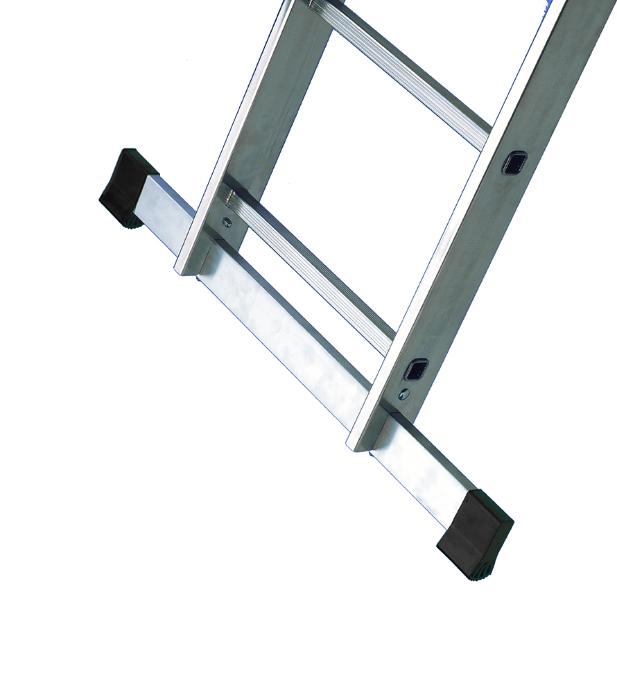 Extension ladders in ribbed aluminium suitable for DIY with standard structure and components.