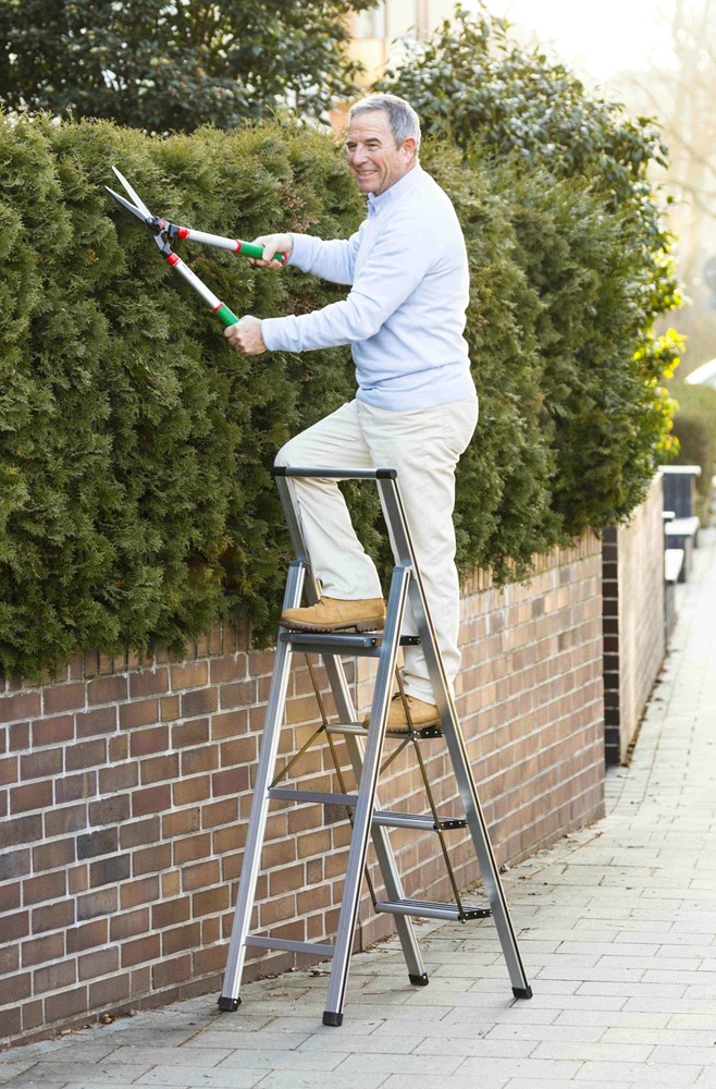 Equipped with wide, flat, non-slip aluminium steps folding into the frame to save space during transport and storage.