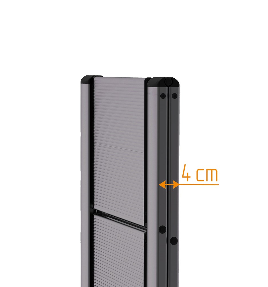 It is very compact when closed and can be stowed in a space of 4 cm.