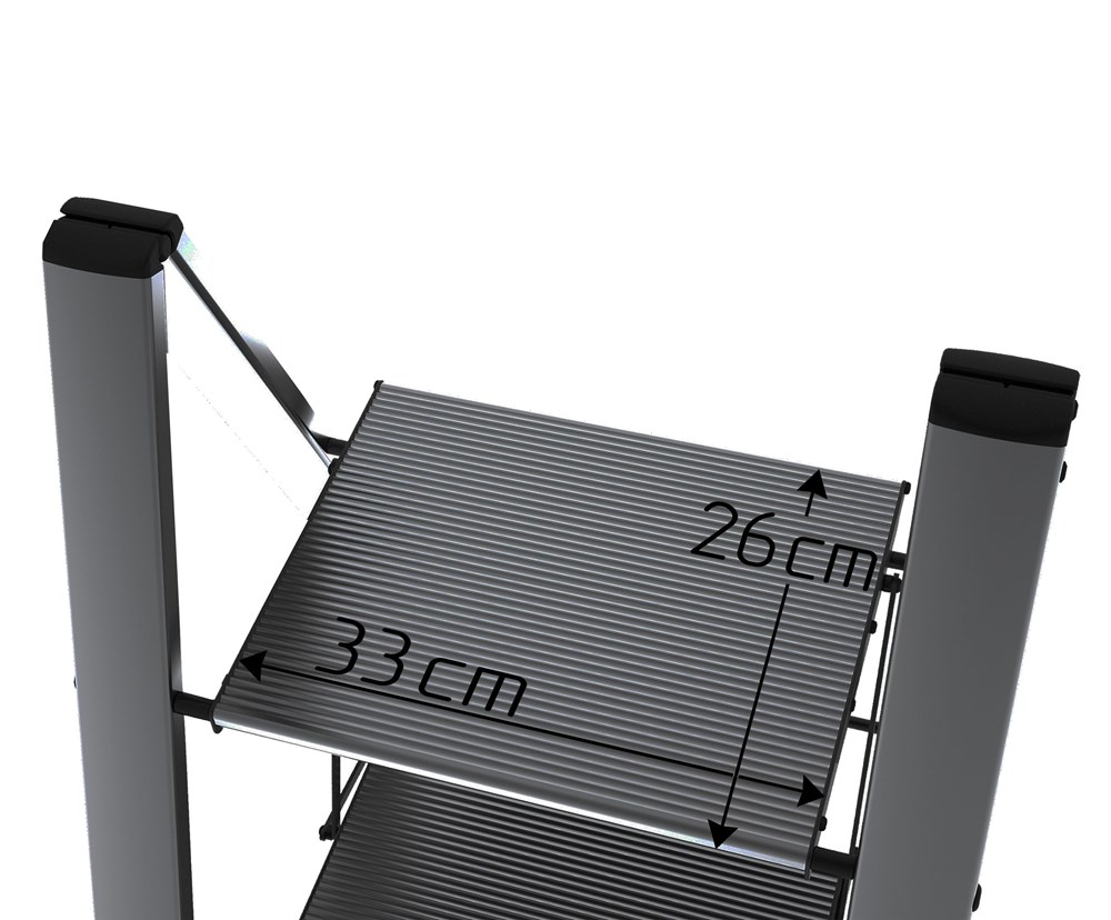 Anodised aluminium step-stool suitable for domestic and light duty professional use, in offices or shops.