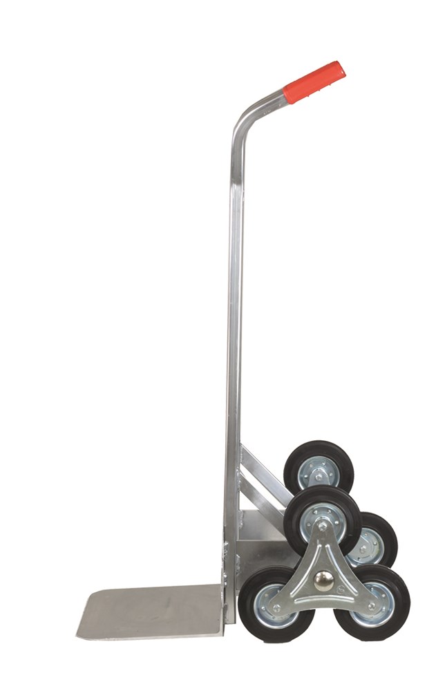 Lightweight aluminum stair climbing handtruck. Wheels with iron hub and reinforced plates