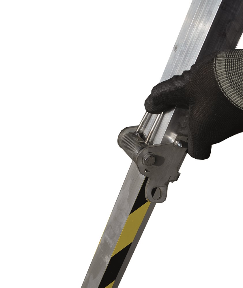 The EN795 certified hook is mounted on the reinforced rung of the ladder that allows the operator to attach their own fall arrest device with rope (PPE not included in the supply).