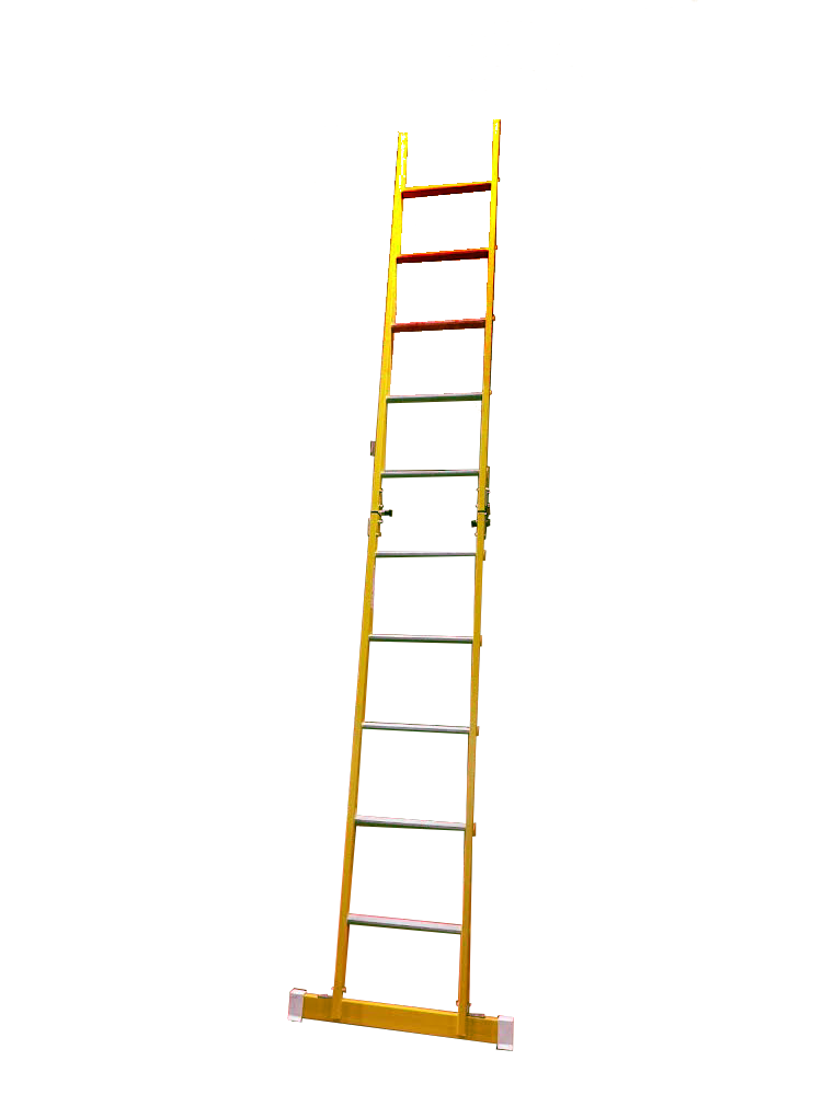 Insulating multipurpose ladder for electricians. Convertible into lean to wall and A frame ladder