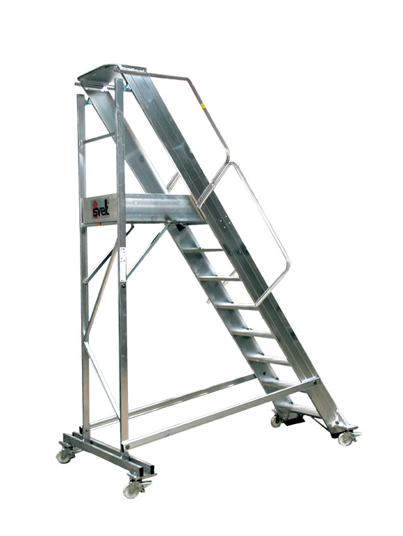 Aluminium stepladder with reinfor¬ced platform, guardrail and handrail. It is particularly suitable for heavy duty. Each step is firmly welded to the frame.
