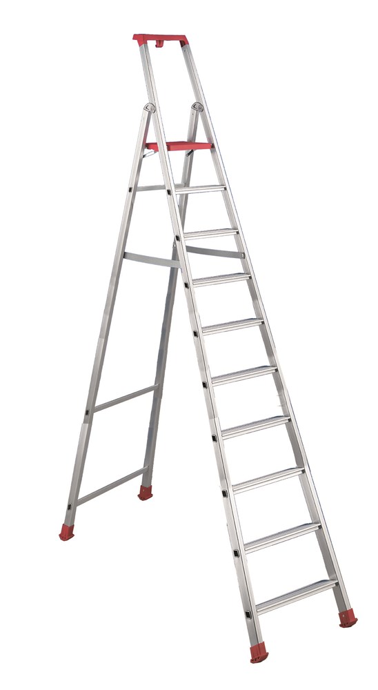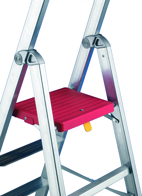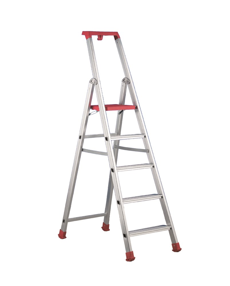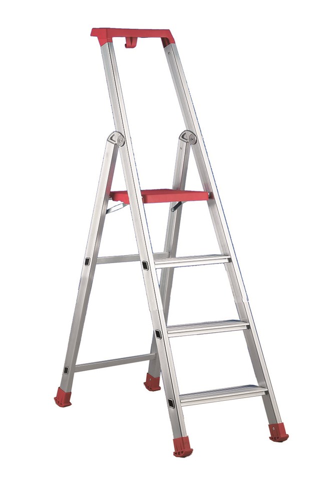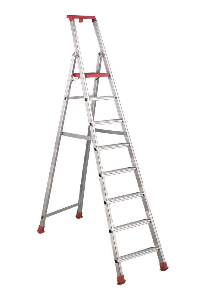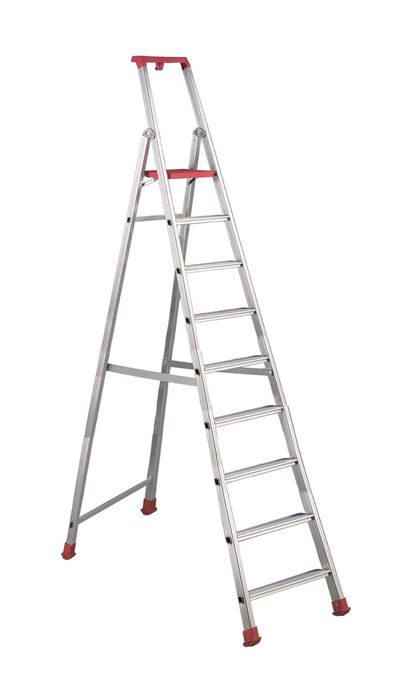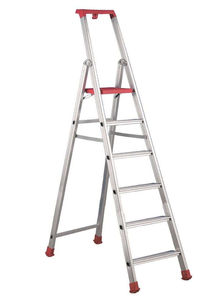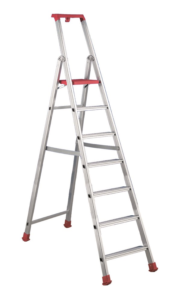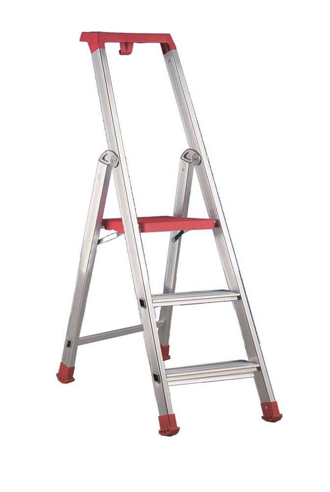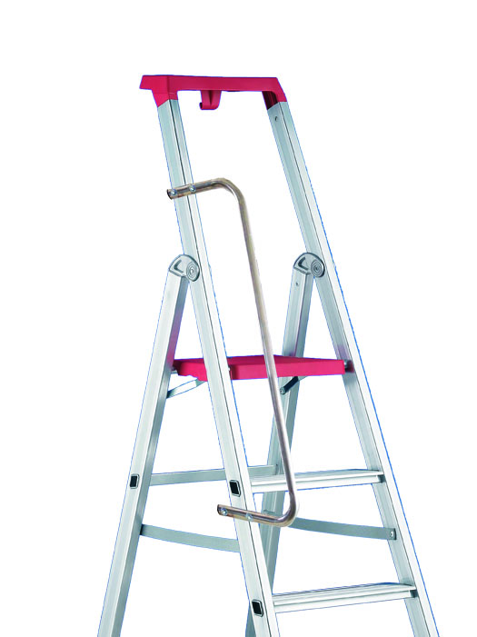 Aluminium stepladder with platform and guardrail. Suitable for use in the home and DIY.