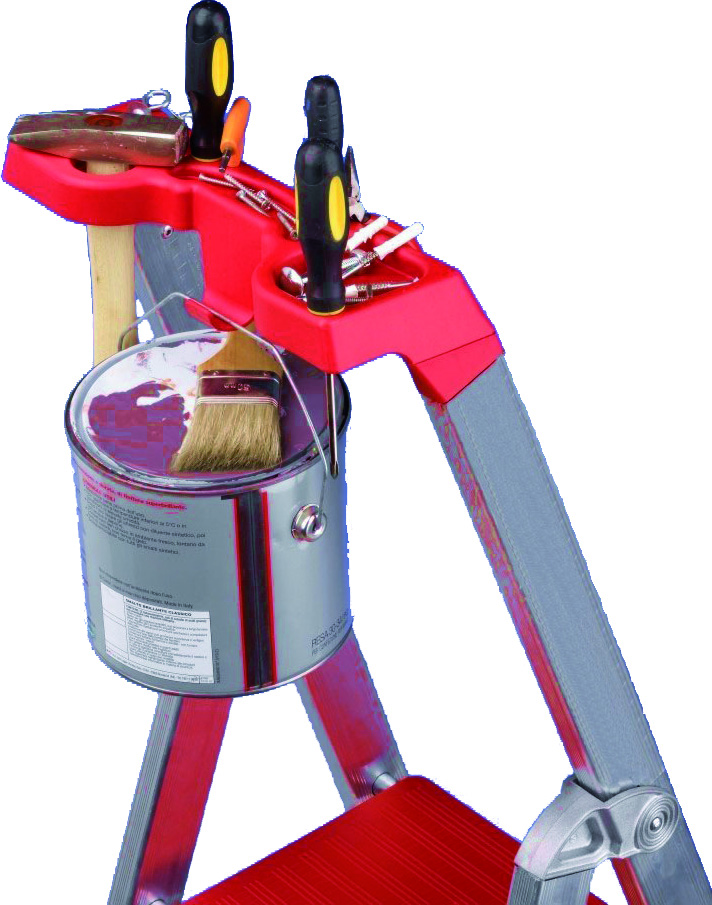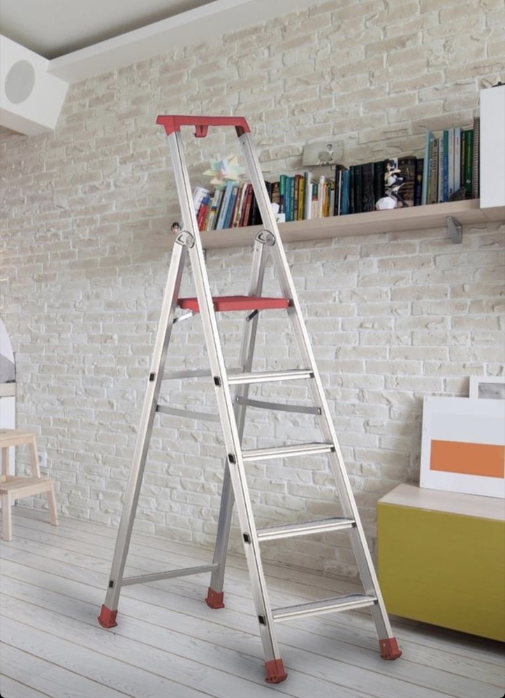 Aluminium stepladder with platform and guardrail, suitable for use in the home and DIY, it is made of a high resiistant extruded aluminium alloy, No. steps from 3 to 10