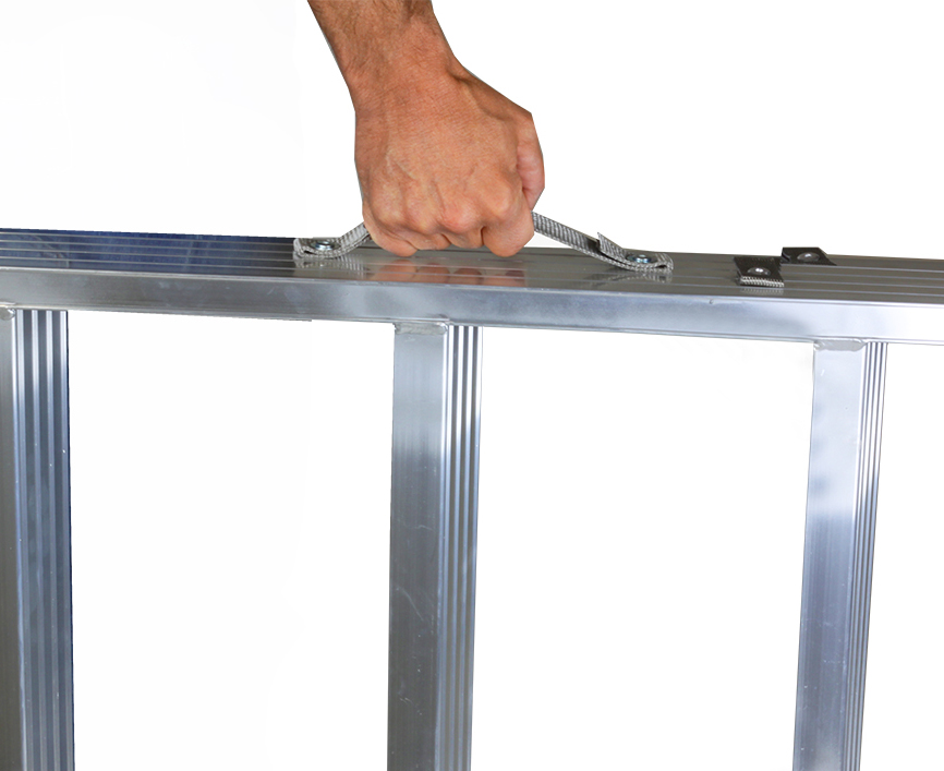 It is made of a high resistant extruded aluminium alloy. The extruded rectangular (50x25 mm) aluminium frames are ergonomic for easy gripping.