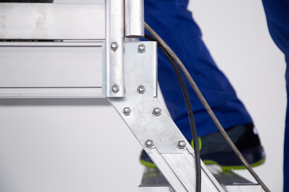 The guardrail is almost perpendicular to the floor and this allows the user to stay near the wall or the machinery.