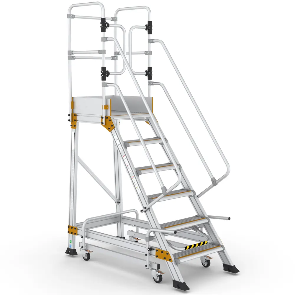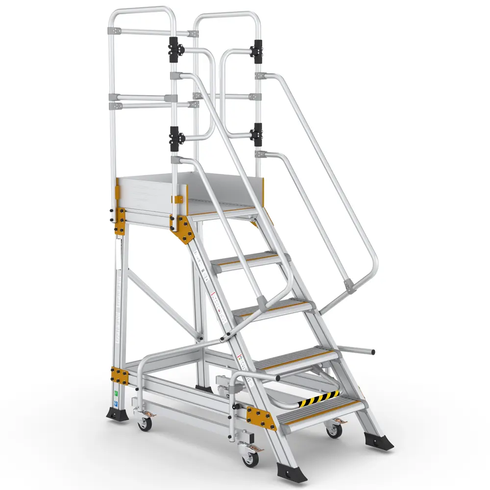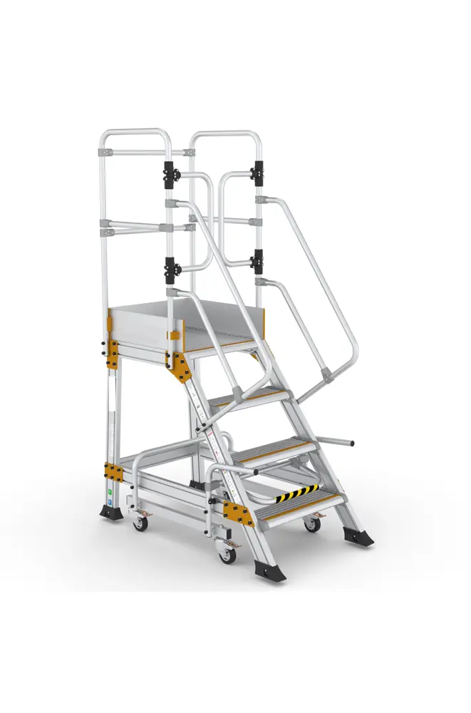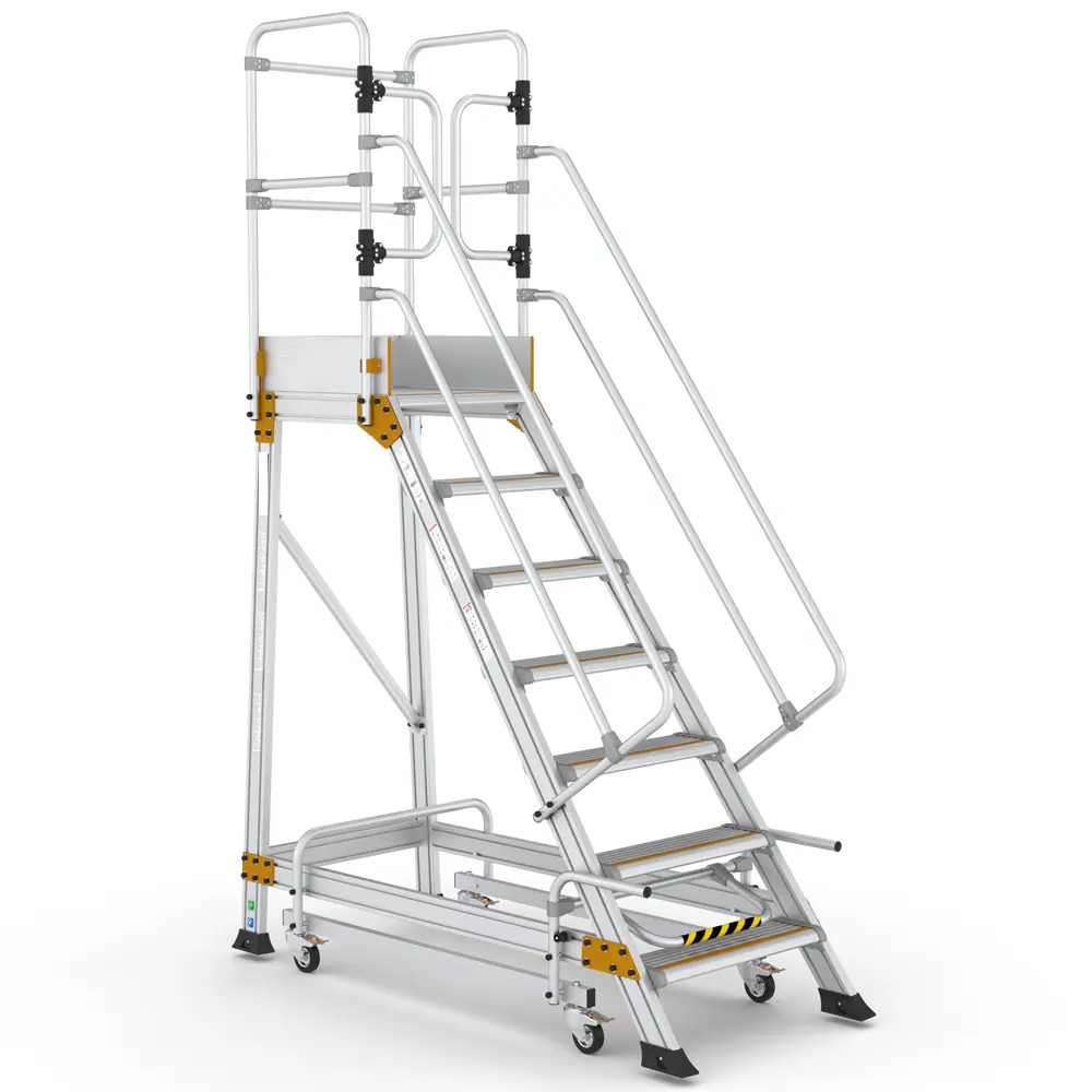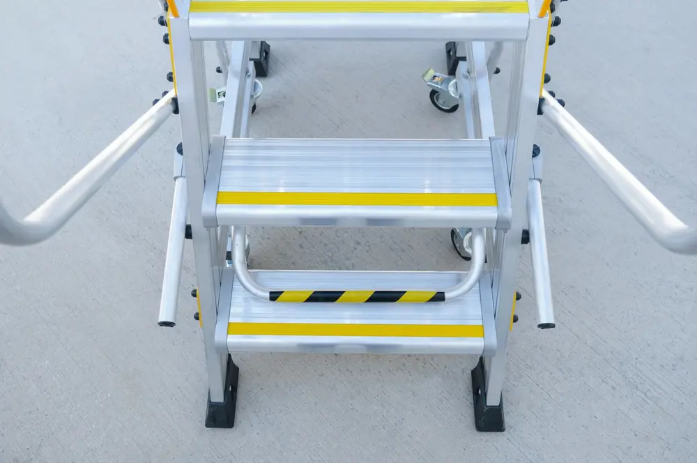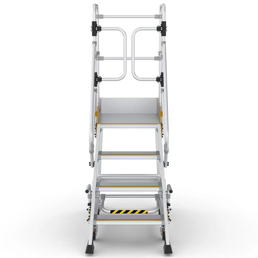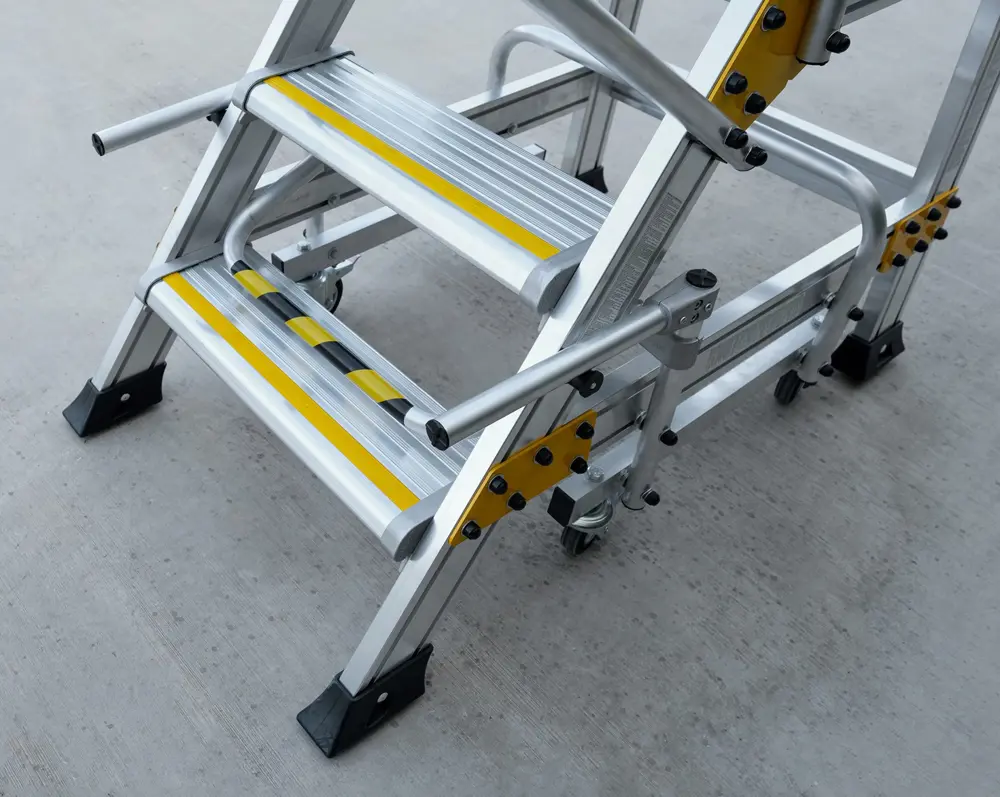 Step stage ladder with SICURBLOCK movement system (4 wheels on manual lever trolley)