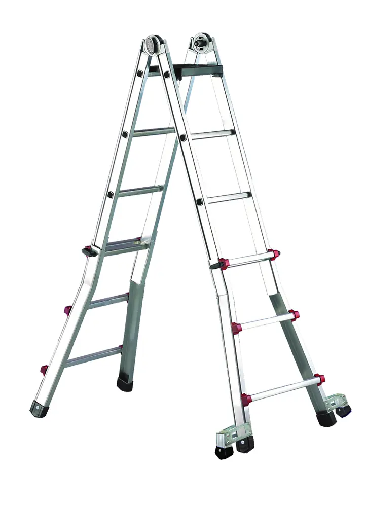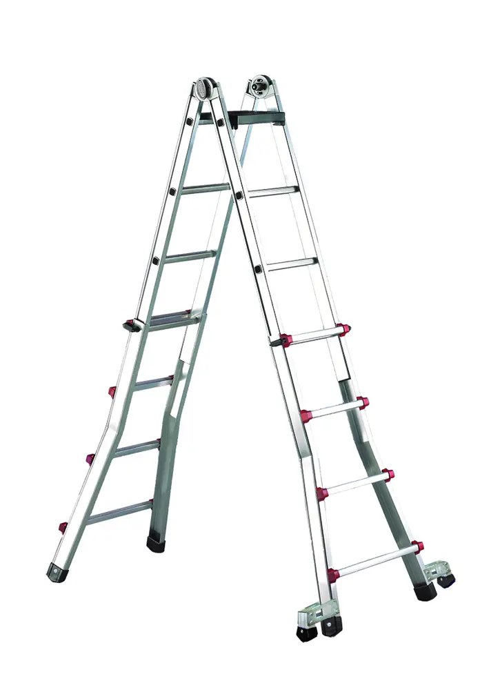 Telescopic ribbed aluminium 3-in-1 ladder with stabilizer designed for heavy duty and DIY.