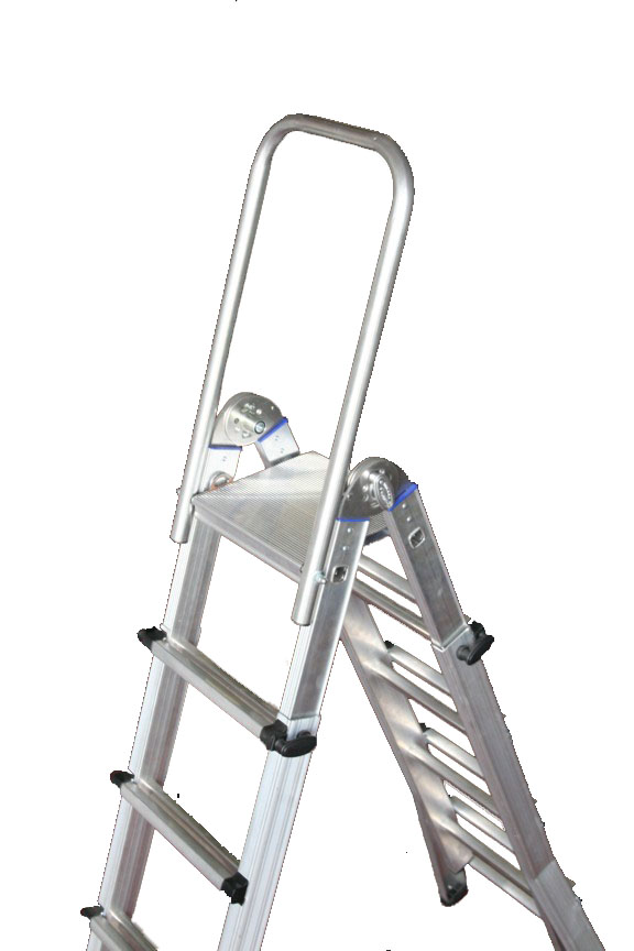 The operator can climb up to the platform at the top of the stepladder safely.