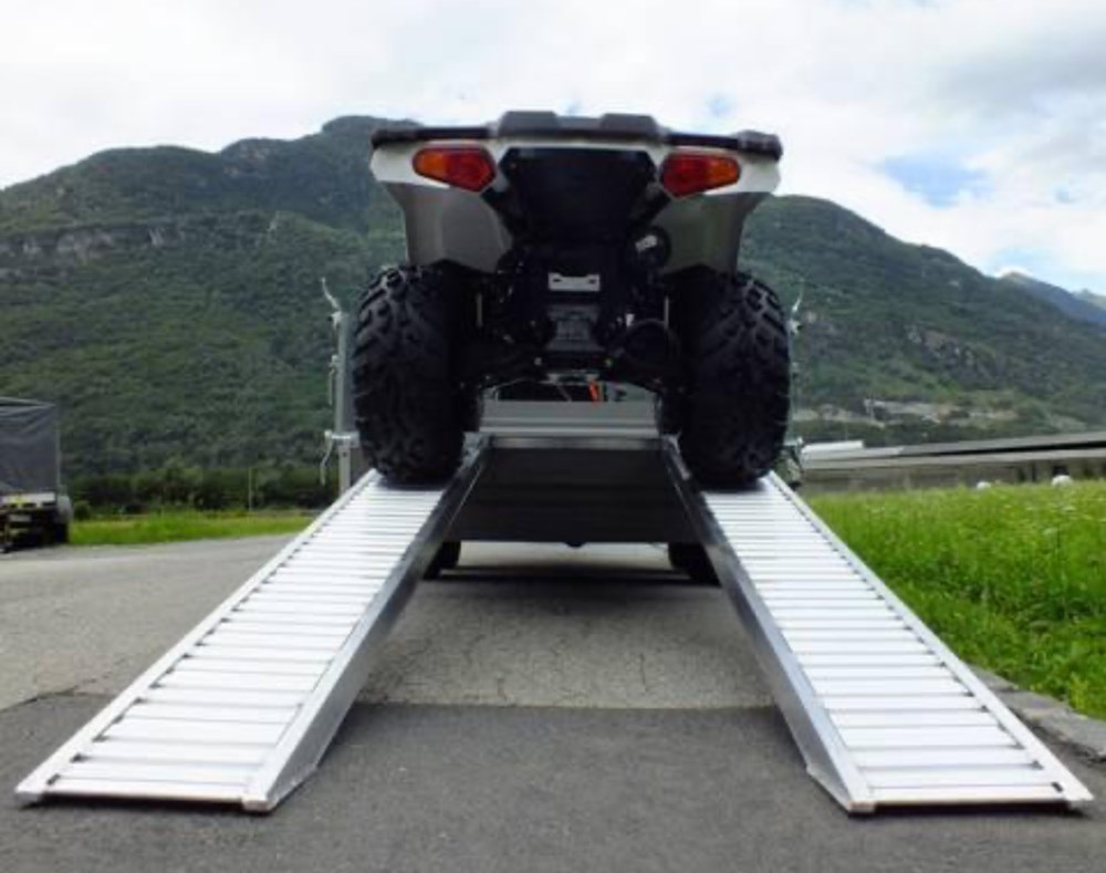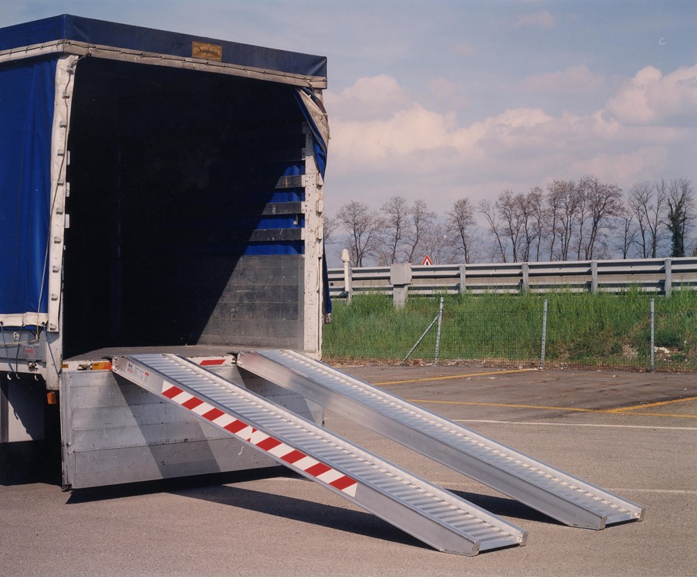 They are made of an aluminium alloy and can load up to 9500 Kg. Suitable for aerial platforms, fork-lifts and other machinery to be loaded on trucks.