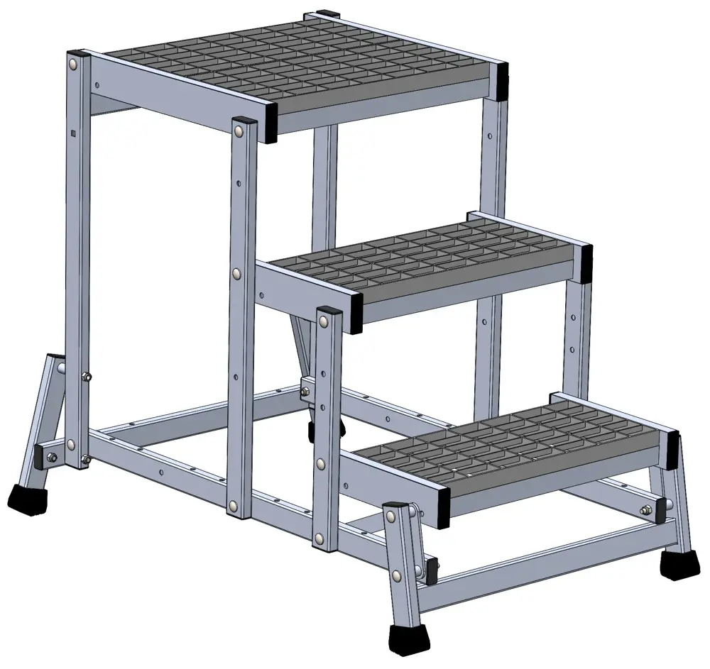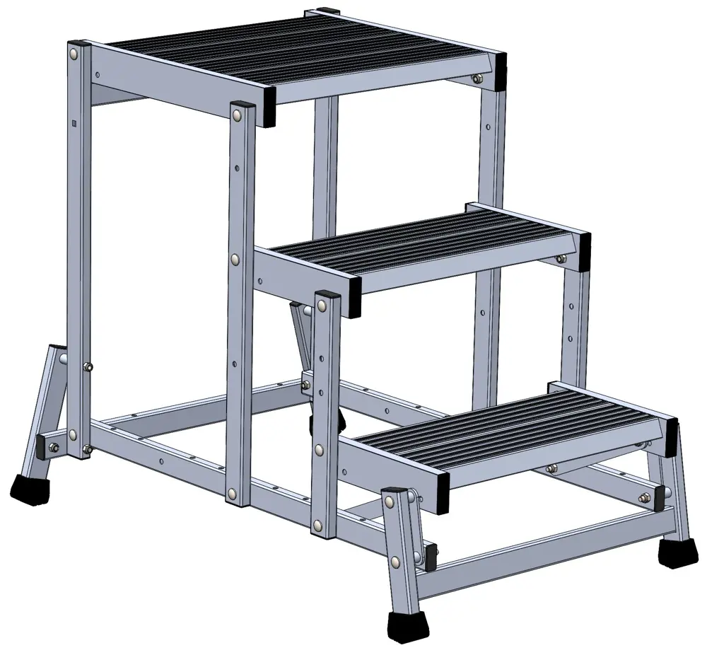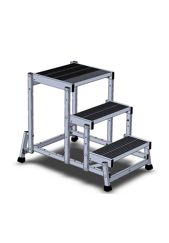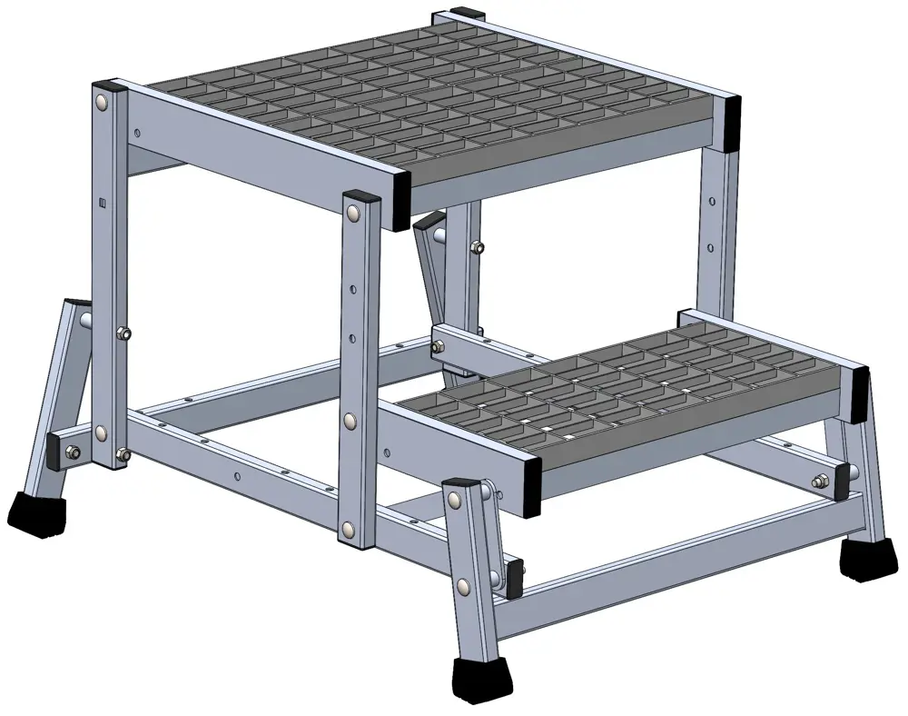 Screwed Industrial Stool with increased platform of 40 cm depth, wide steps and customizable with various optional accessories