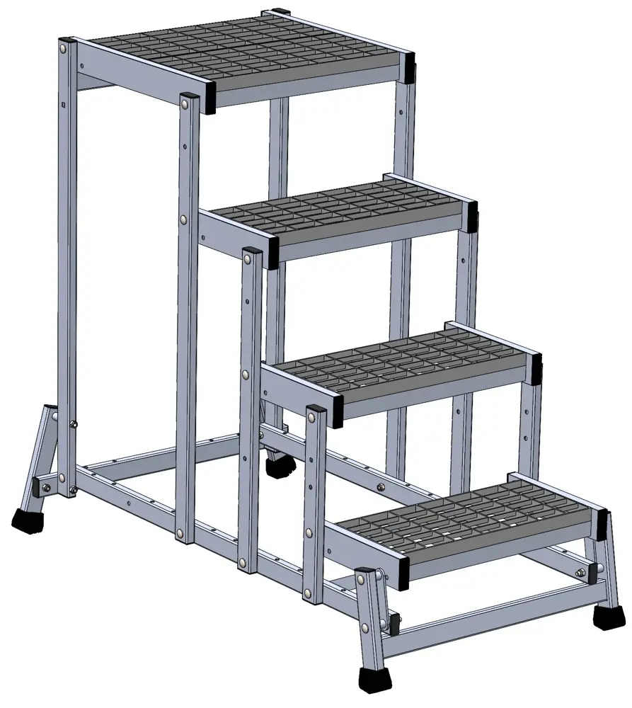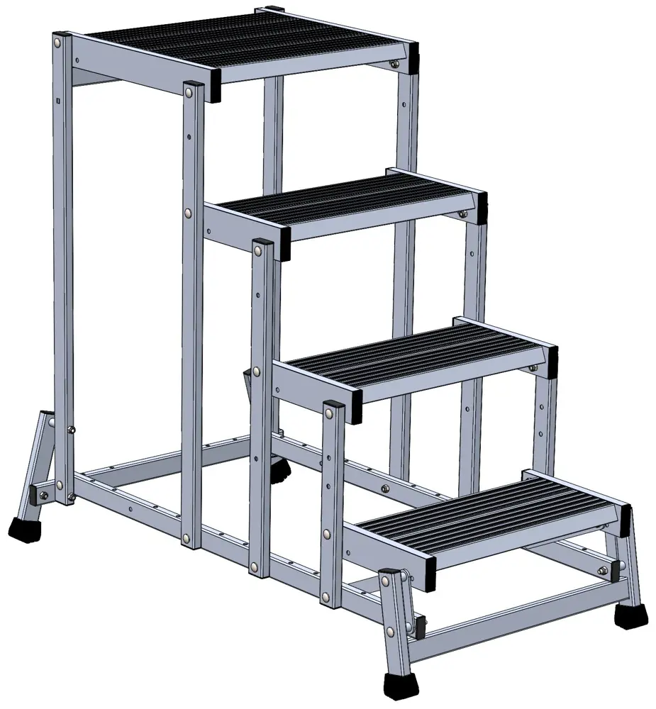 Professional stool with 1 to 4 steps in extruded aluminum with a climbing section.