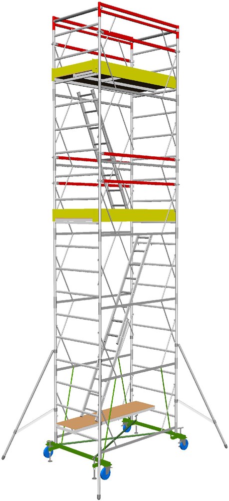 Tower scaffolding system in steel FE360 galvanized against rust. It is safe to use and easy to assemble.