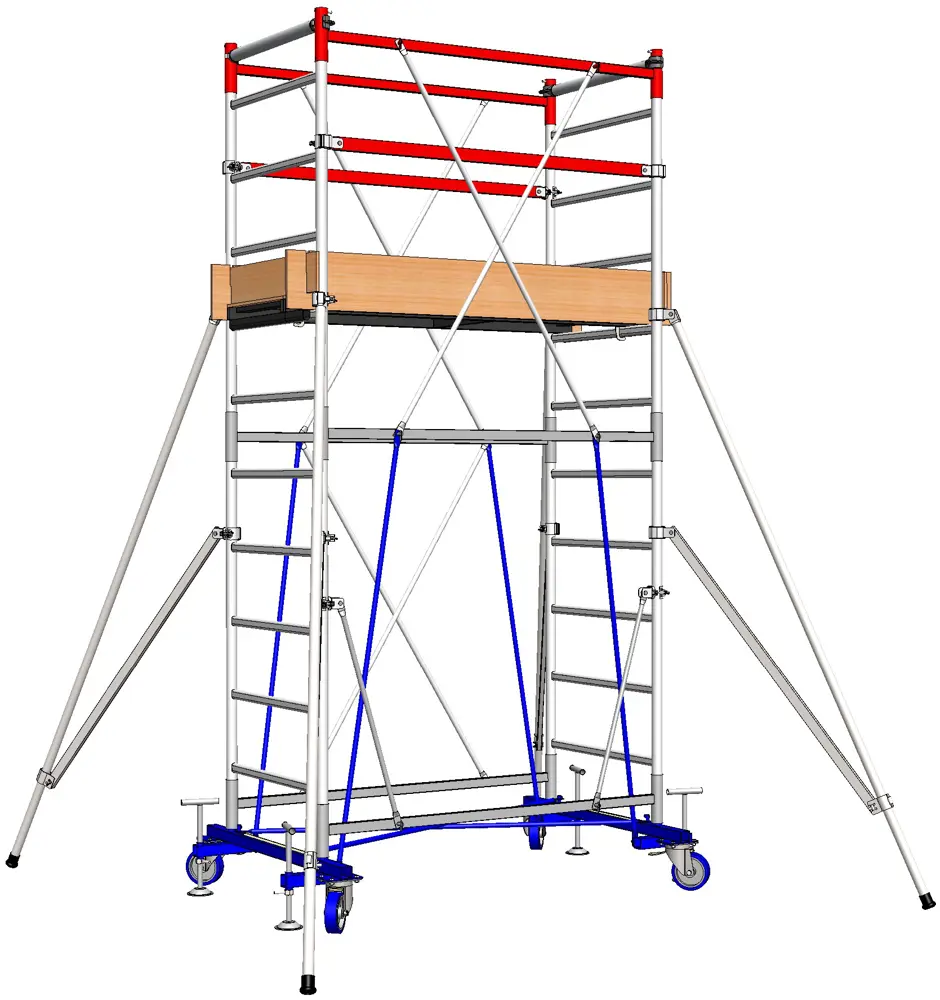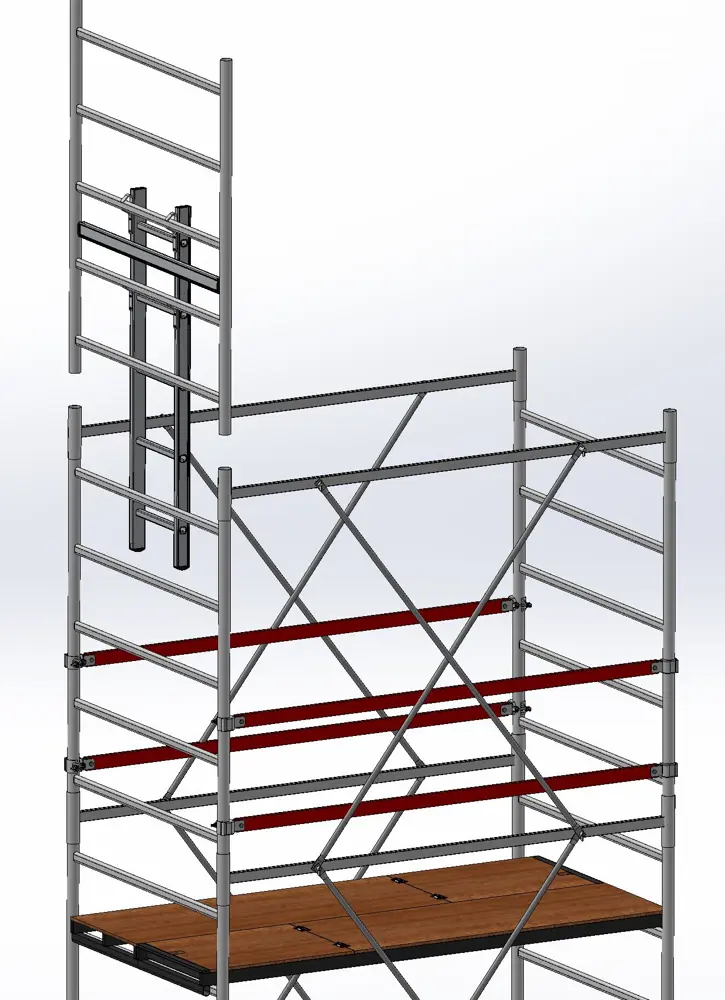 With this scaffolding it is not mandatory to use the internal ladders to access the working platforms.