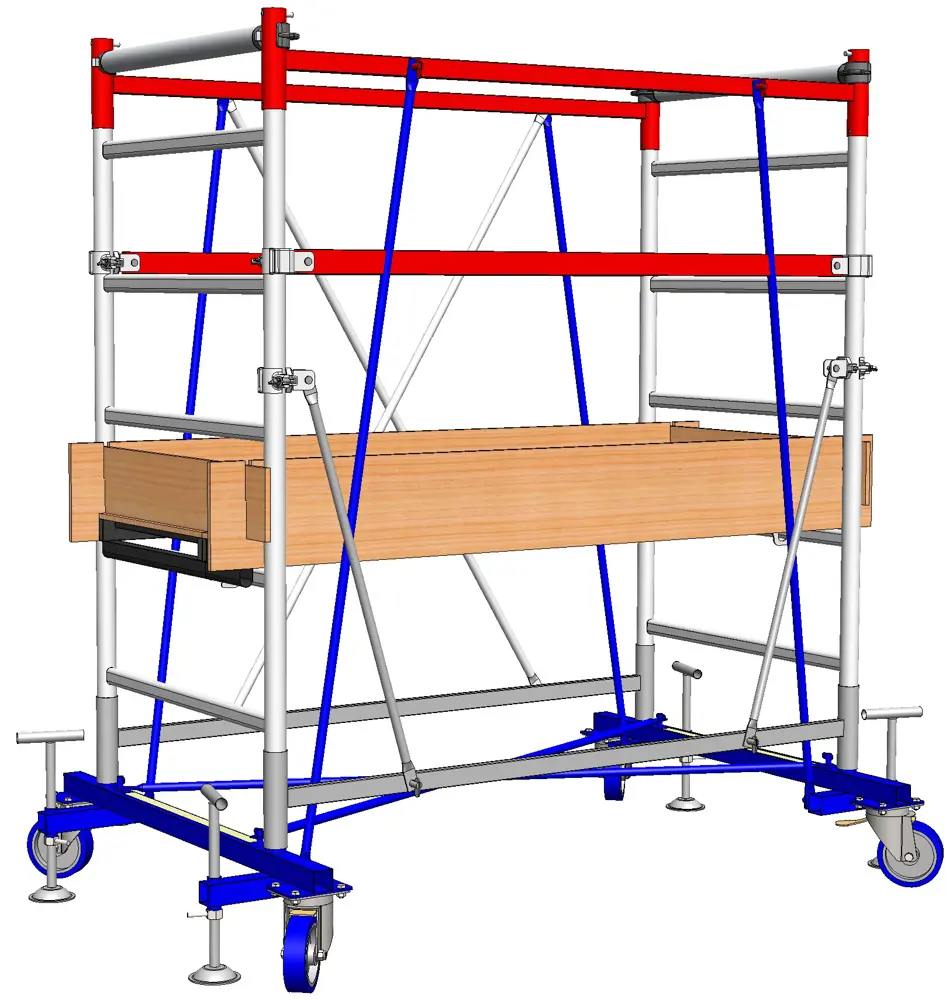- The position of the cross bars forms, in each span of the scaffolding, 4 isostatic and non-deformable triangles, which avoid twisting and bending even at great height.