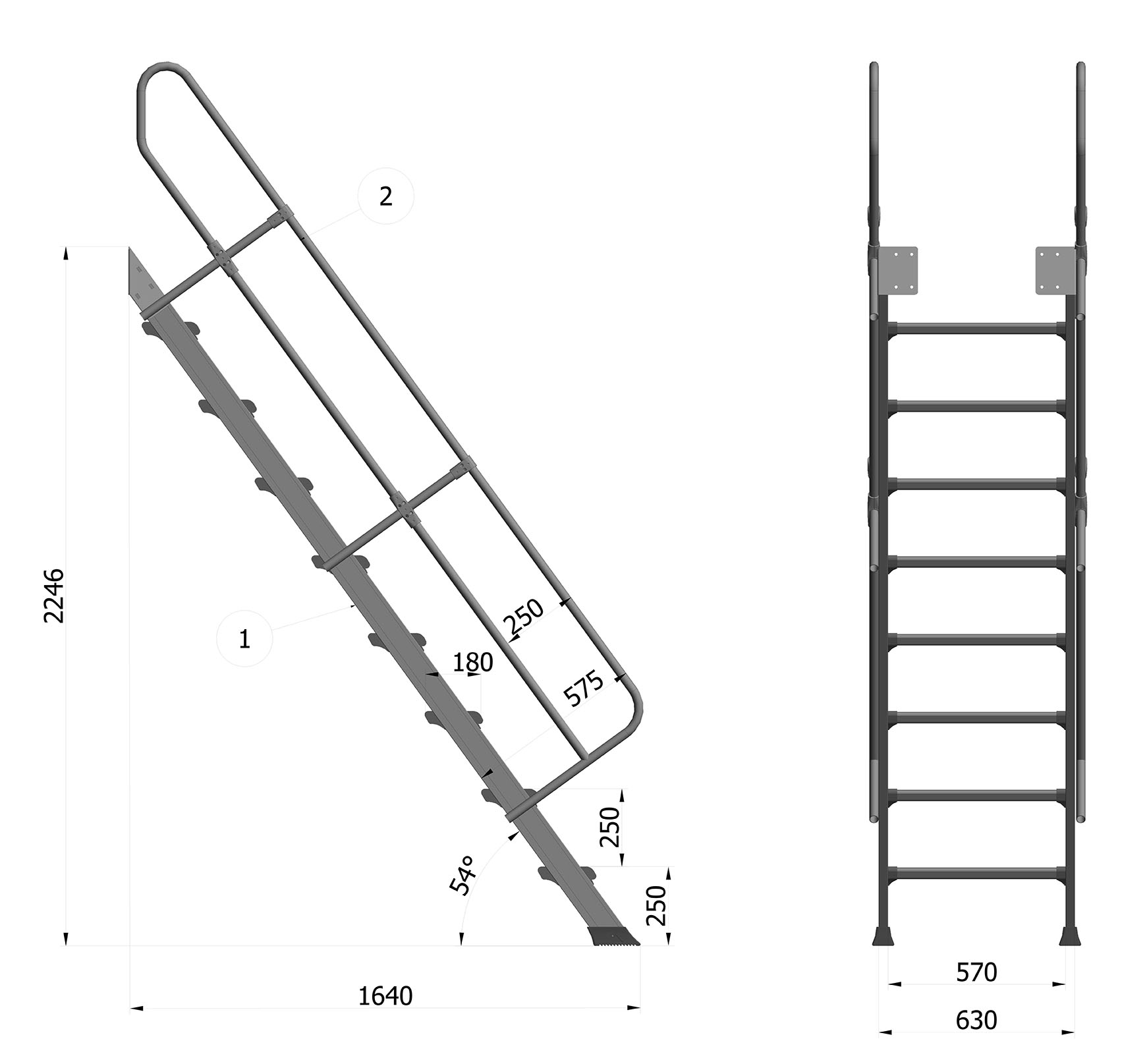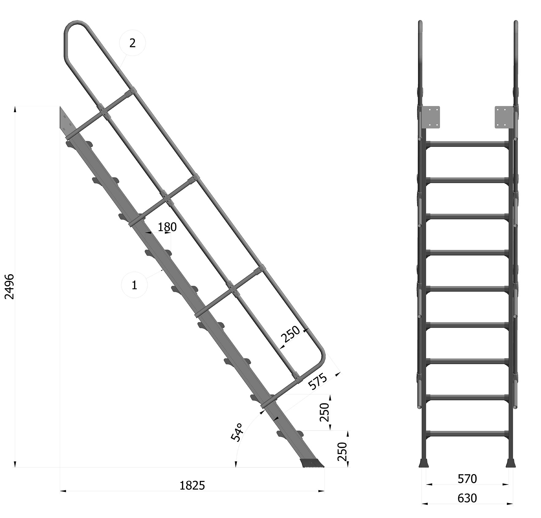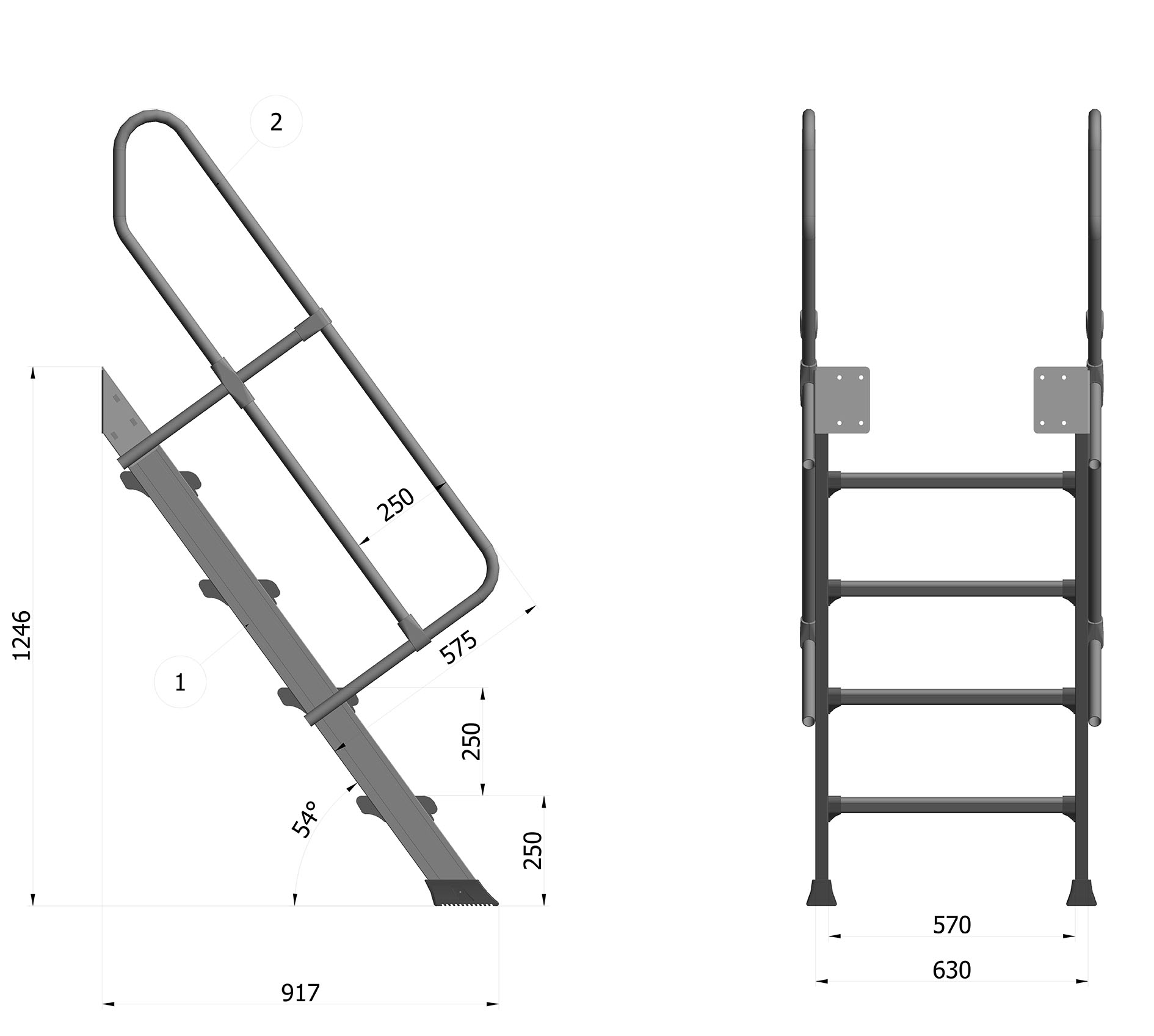 - Distance between steps 250 mm