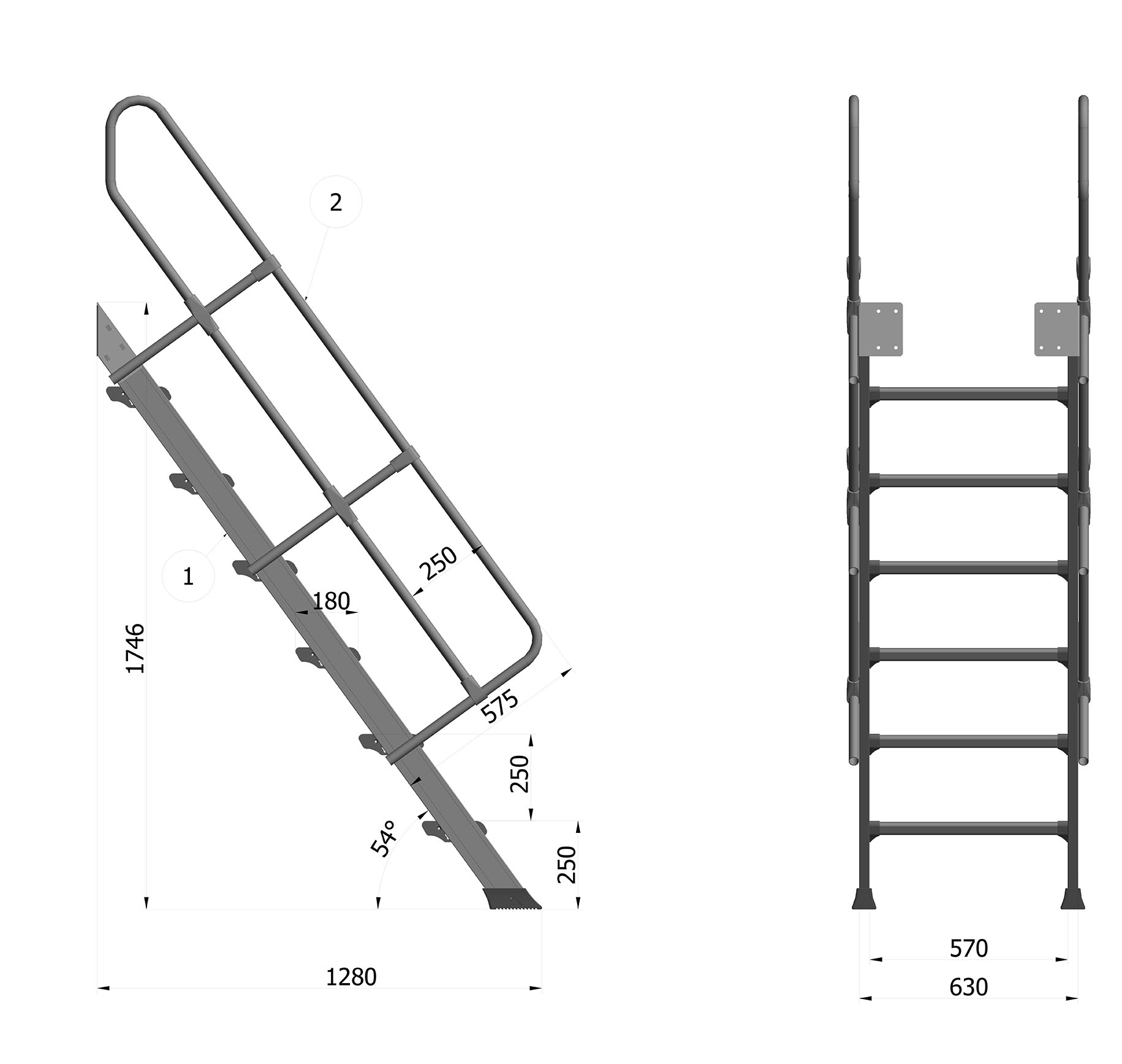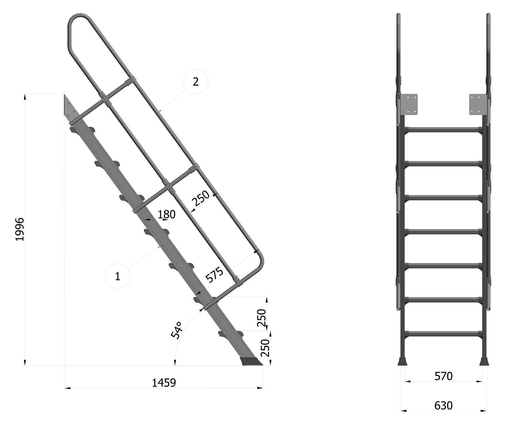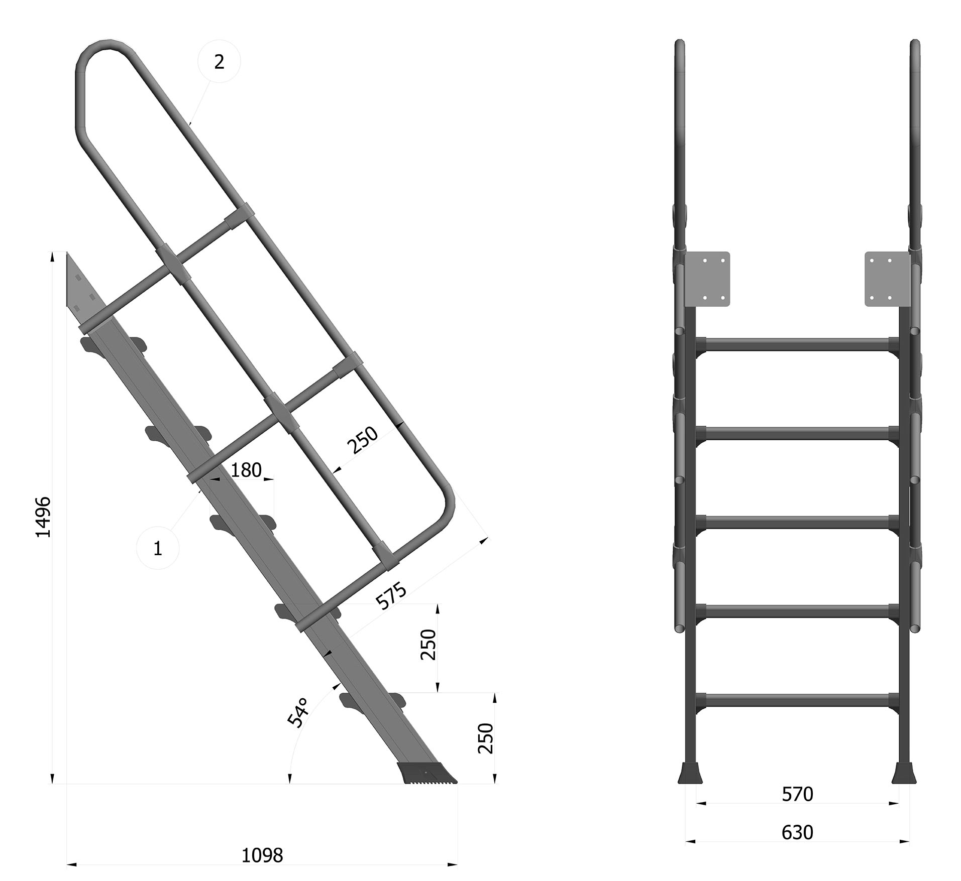 - Distance between steps 250 mm