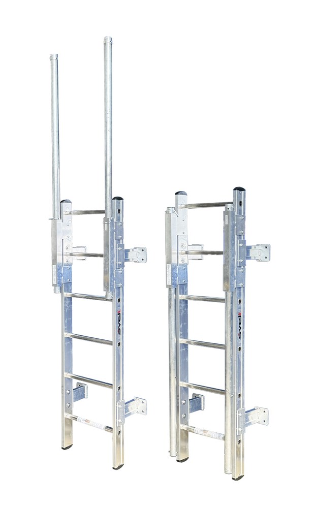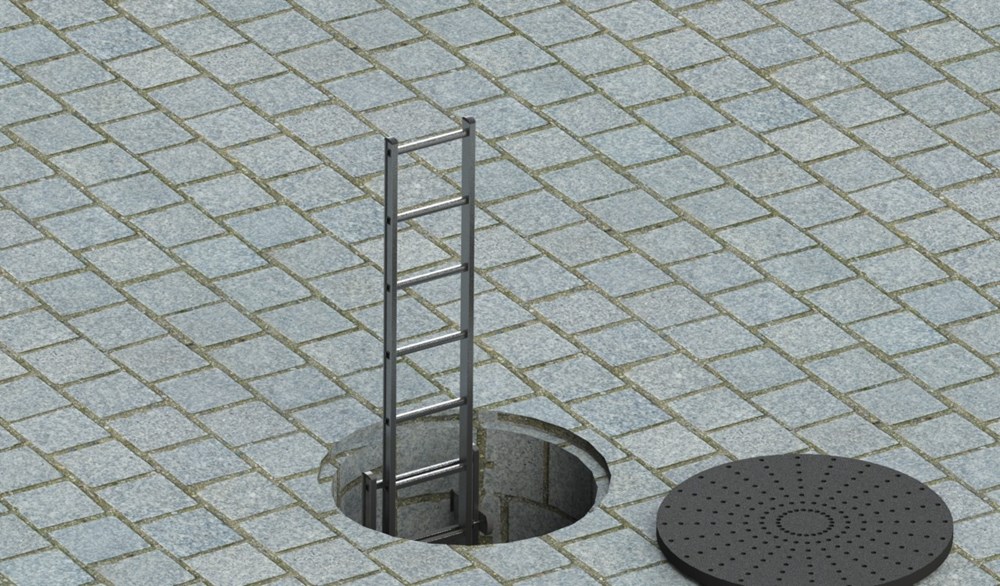 To be fixed on the wall inside the well or manhole, with or without a safety cage. Equipped with retractable landing handles