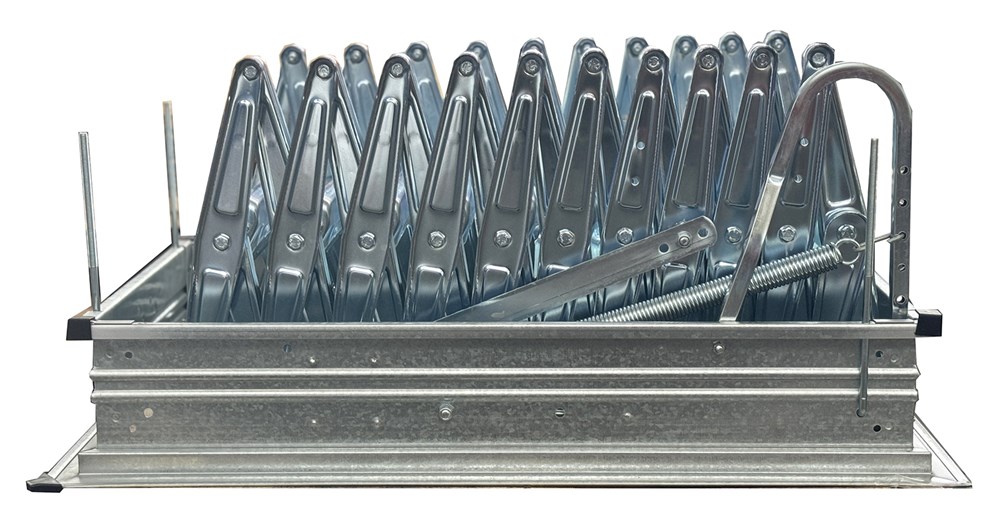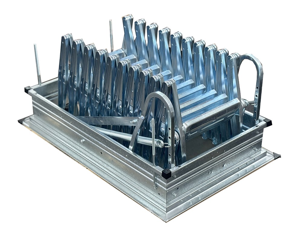 Galvanised steel loft ladder equipped with four fixing devices. It can be easily assembled without skilled labour.