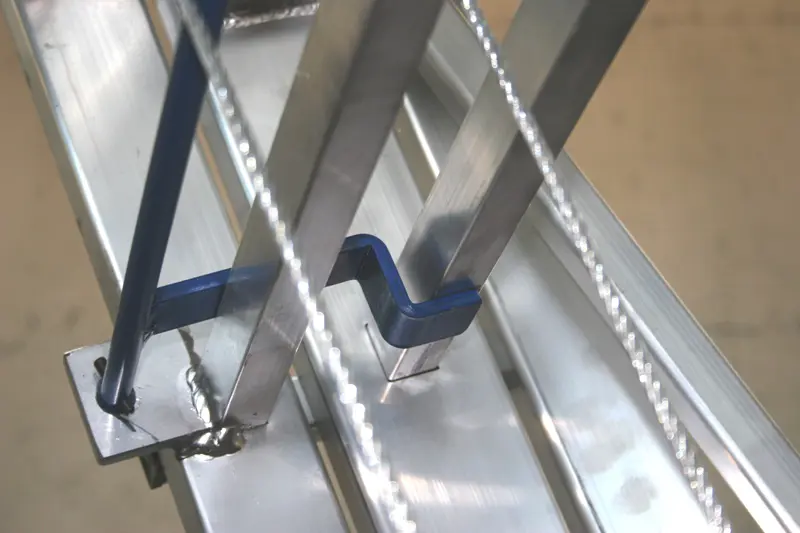 Grip points under the forklift frame for possible movement in the yard between one shed and another.