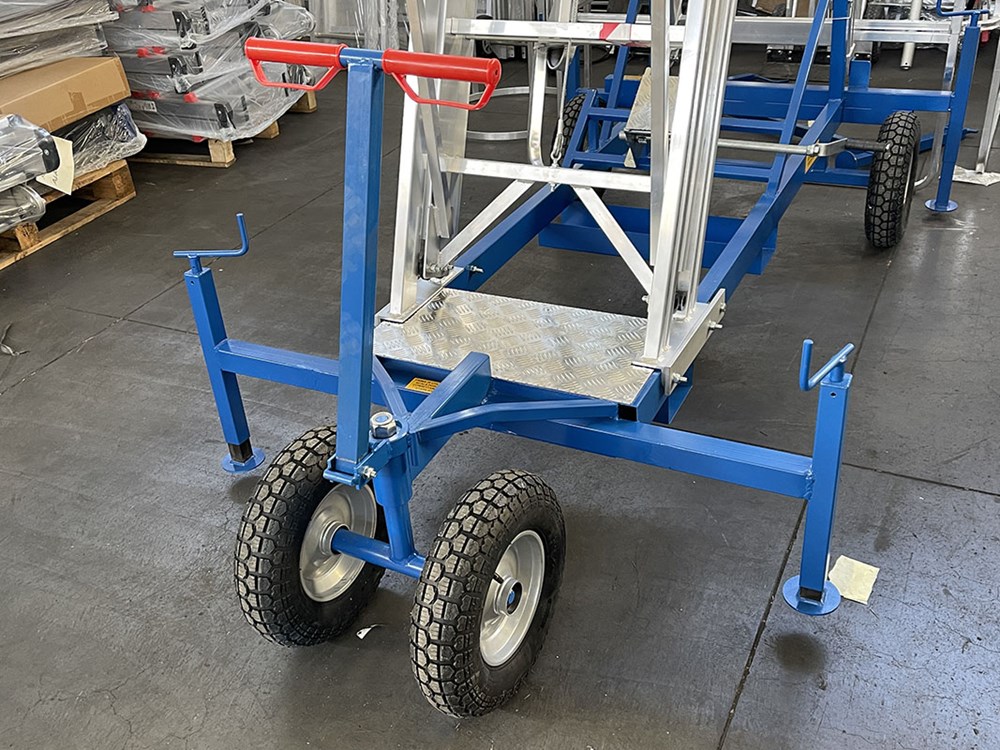 The steel painted chassee hold a very heavy duty aluminium ladder with gruardrails and toeboards on all sides.