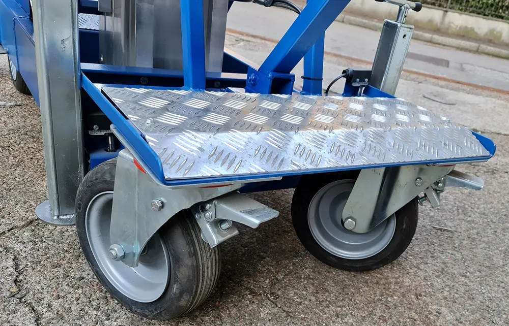 - Epoxy painted steel chassis and telescopic column in ribbed aluminium with controlled flexion