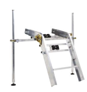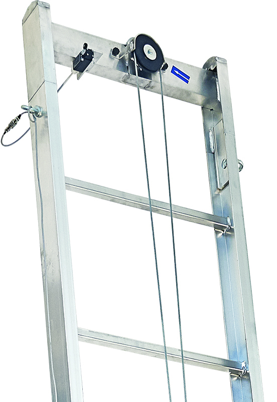 A mechanical operated anti-fall device stops the carriage automatically. The carriage shifts through a special synthetic material called DELRIN which is highly resistant and self-lubricating.