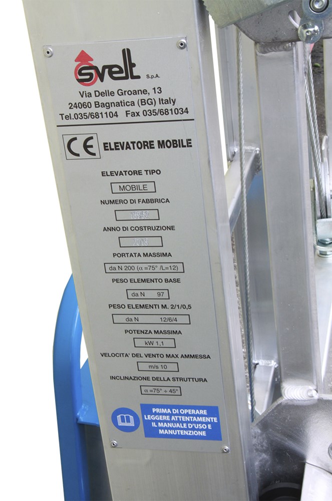 There is a plate on the elevator showing the heights, the inclinations and the top weight you can load. If the elevator is equipped with the adjustable bend, the capacity is shown on the table column concerning 45°.