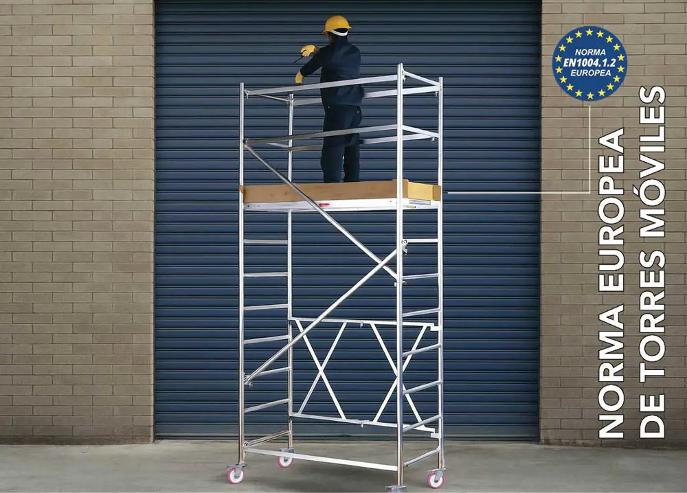 El sector de los andamios y torres móviles evoluciona hacia mayores estándares de seguridad y calidad. La norma europea UNE EN 1004.1.2:2021 establece las pruebas y cálculos que los fabricantes deben respetar según la clase y capacidad indicada en cada producto. Aunque esta norma no es obligatoria, se ha convertido en un referente para identificar torres móviles que cumplen con los requisitos europeos más exigentes.